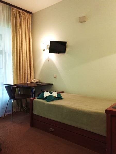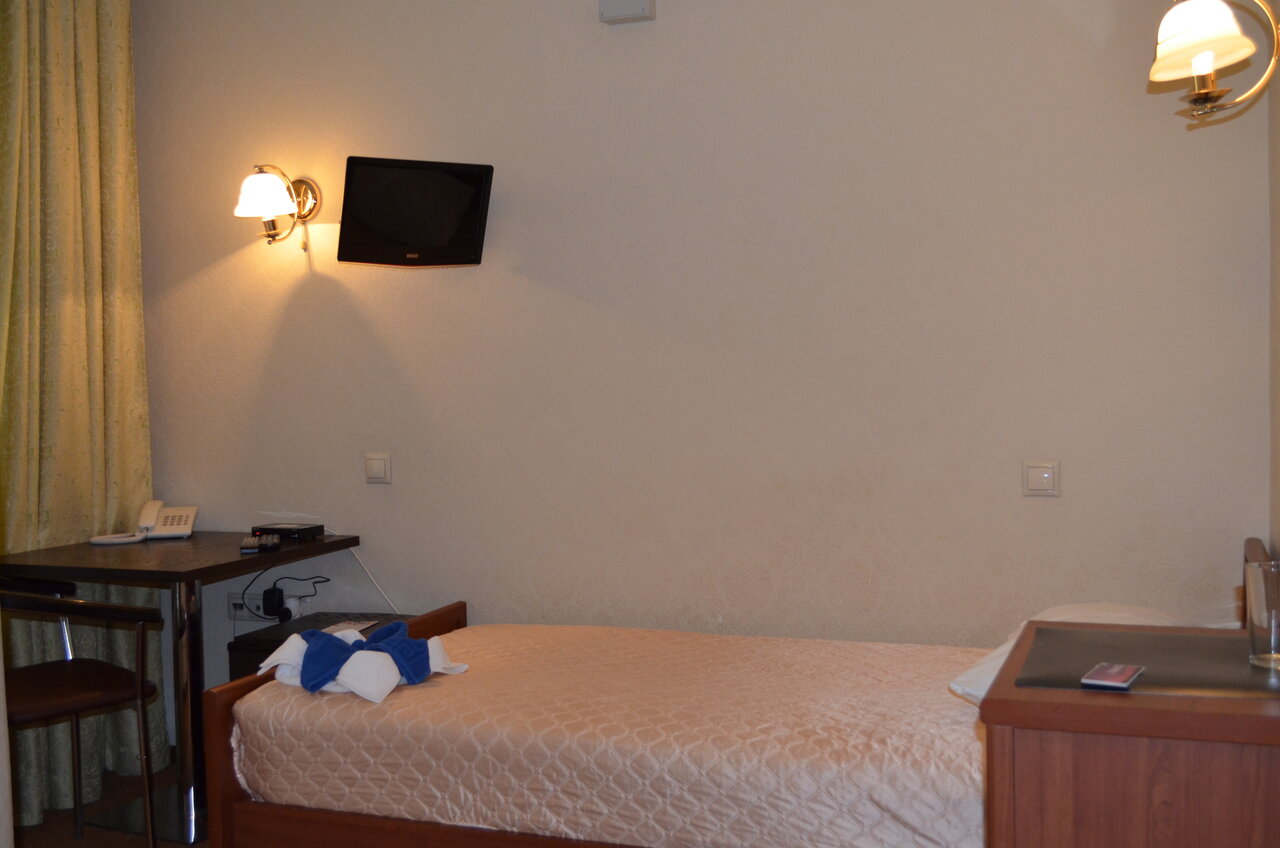Одноместный номер . В номере; стол кресло, тумбочка ,мини-бар, душ в номере . телевизор.