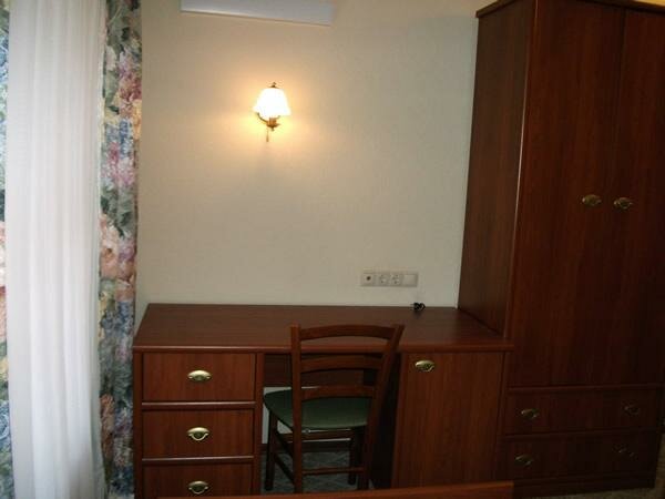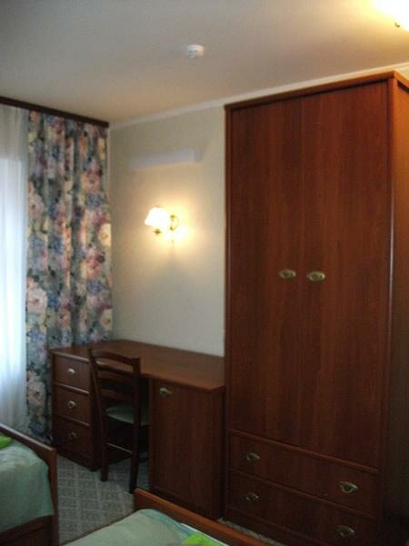 Ни одного плюса эта гостиница не заслуживает! Номера запущены, ни кто ни зачем не следит. Одноместный номер — телевизор не показывает, нет сигнала, горячее водоснабжение отсутствует, кровать сломана, вся кривая. Так же отсутствует охраняемая парковка, вернее она есть, но для работников близлежащих офисов.