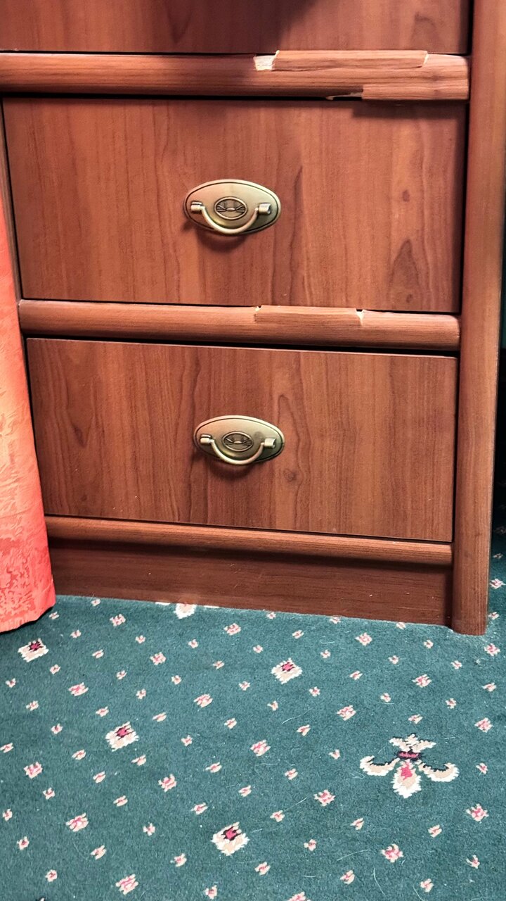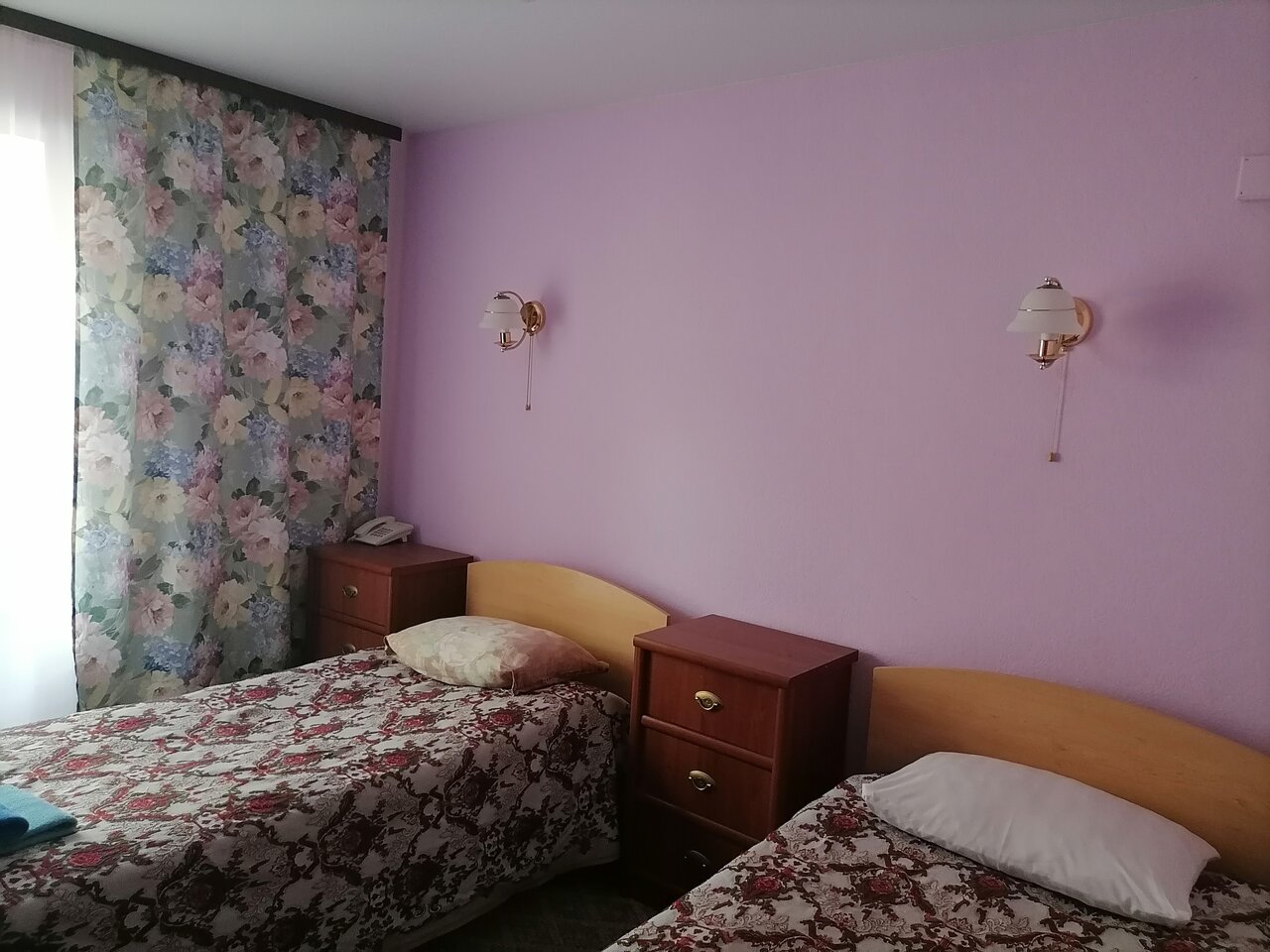 Поселили в трехместный номер: 2 нормальные кровати и 1 раскладная(вся поломанная). Комната маленькая, нет места для раскладушки ,мебель вся покоцанная.