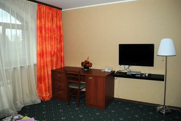 Мини-отель находится на окраине города, рядом промзона. На автомобиле добираться до центра некритично. Номер полулюкс находится в мансарде. Вино мере комфортная температура. Есть всё необходимое. Мебель нормальная. Сантехника работает. Есть даже гигиенические наборы в ванной комнате. НО постельное бельё очень низкого качества! Отдельный плюс — есть общая кухня с посудой, холодильником, плитой, микроволновкой. И место, типа столовой, со столами и большим телевизором. Персонал нормальный, приветливый. На наши просьбы сразу реагировали. Есть небольшие проблемы с парковкой непосредственно рядом с отелем. Можно поставить только один автомобиль. Но персонал очень корректно решил этот вопрос. Так же машину можно поставить без проблем рядом со шлагбаумом утотеля, это 20 м от входа.