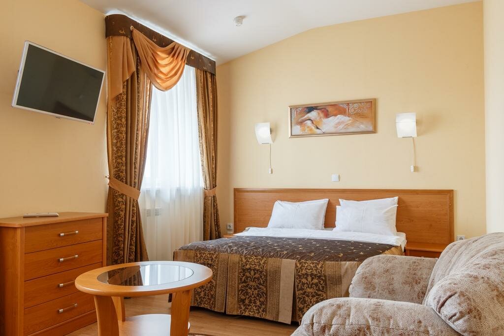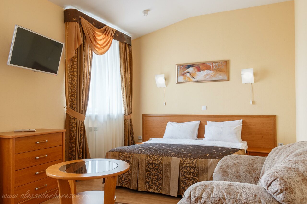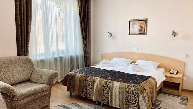Улучшенный - современный просторный номер улучшенной планировки (27-29 кв.м.). Номера категории Улучшенный после реновации оформлены в различной цветовой гамме. Номер квартирного типа состоит из прихожей, спальни и просторной ванной комнаты