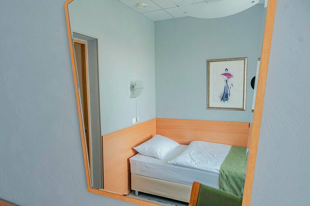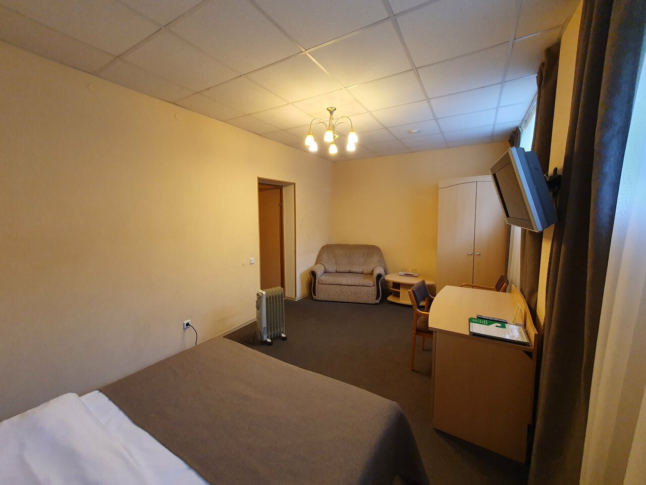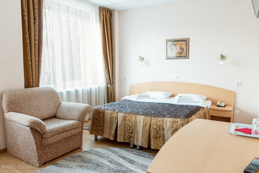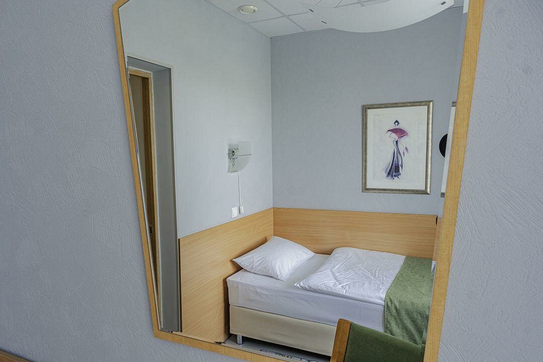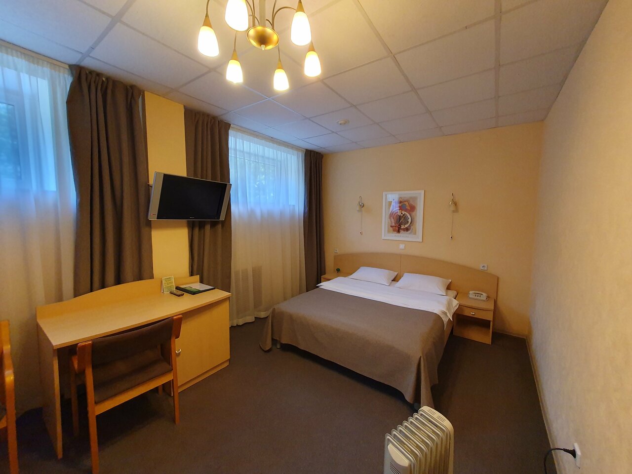 Одноместный номер с 1- спальной кроватью и ванной комнатой с душевой кабиной. Есть все необходимое для комфортного проживания. В спальне: телевизор, холодильник, телефон, фен, шкаф/гардероб. Ежедневная уборка номера и смена полотенец