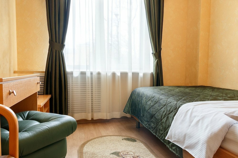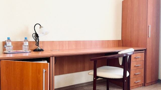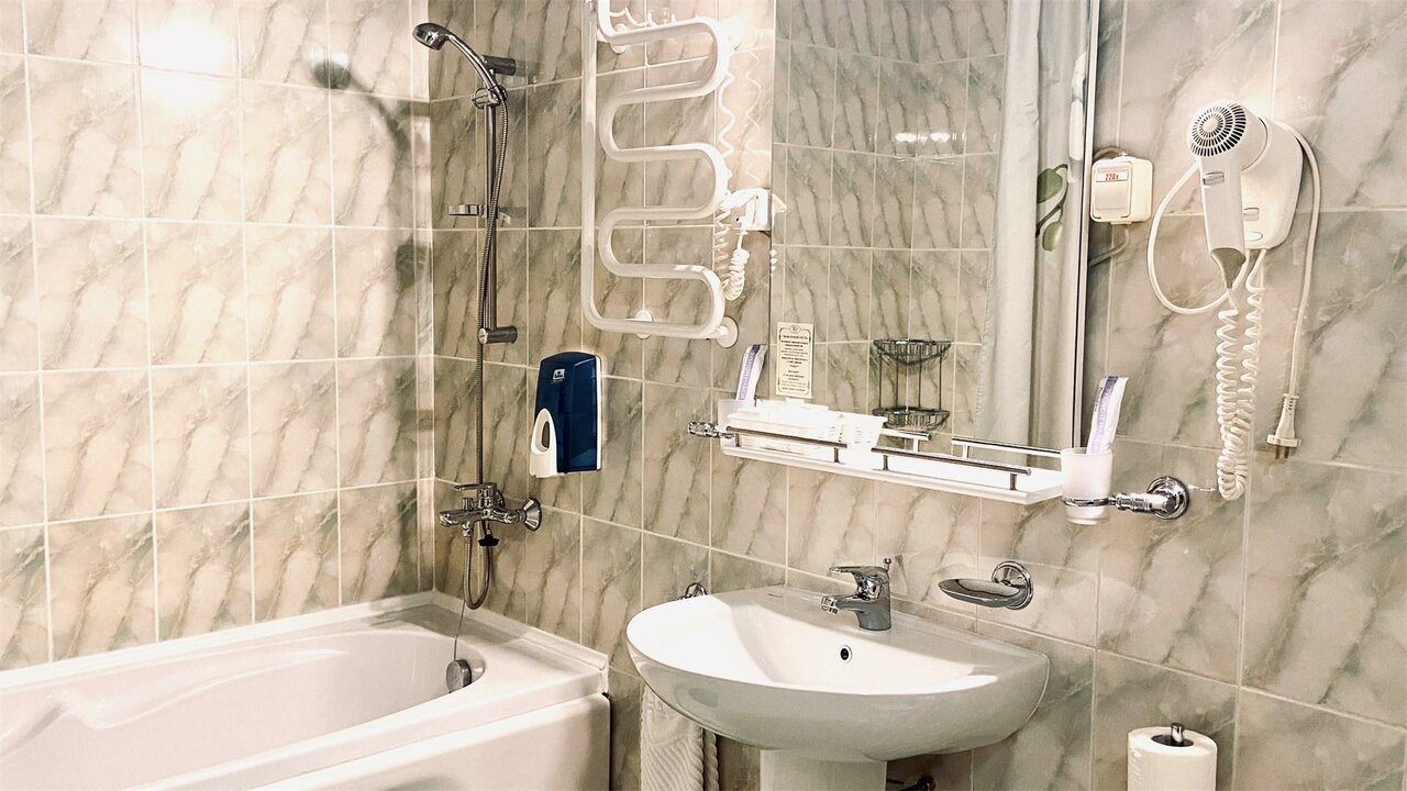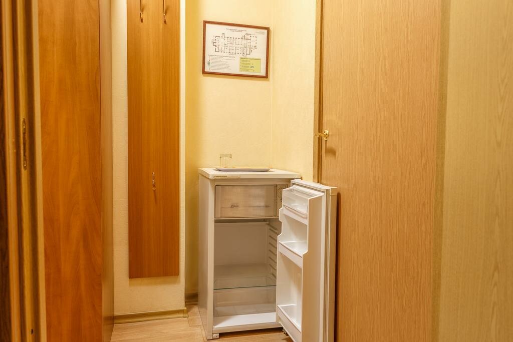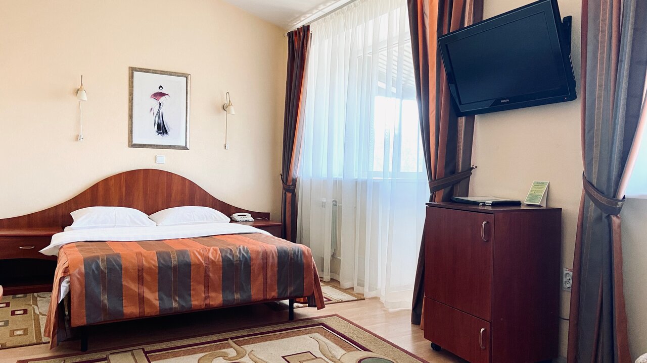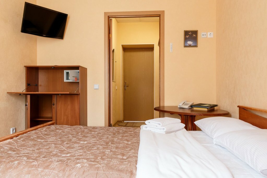 Одноместный номер с 1- спальной кроватью и ванной комнатой с душевой кабиной. Есть все необходимое для комфортного проживания. В спальне: телевизор, холодильник, телефон, фен, шкаф/гардероб. Ежедневная уборка номера и смена полотенец