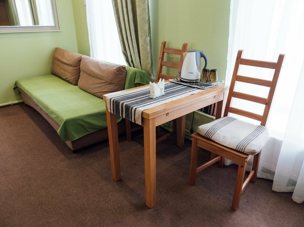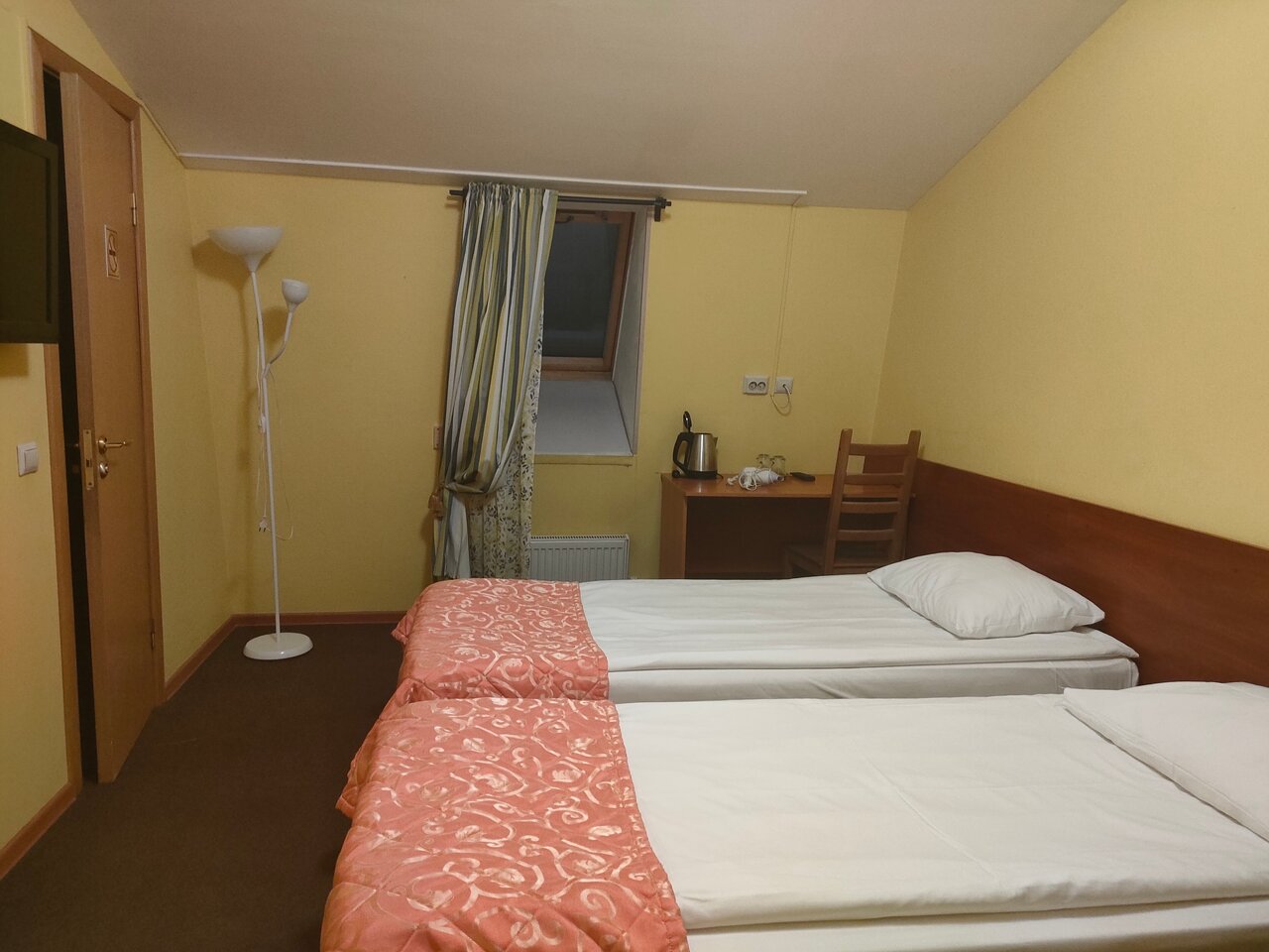 Прожила в гостинице 16 дней. Постель поменяли 1 раз. Мыло, шампунь, туалетная бумага по просьбе. Полотенца меняли раз в неделю. Электрочайник коричневого цвета внутри. Мусор из номера выносила сама. Его вообще не выносили. Полы не мылись.