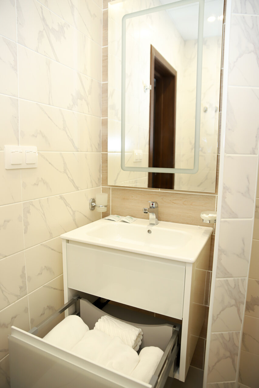 Отель новенький, но есть минусы — нет сеток на окнах, комары достают. Душно. Очень сильная слышимость из коридора. Душ не запирается.