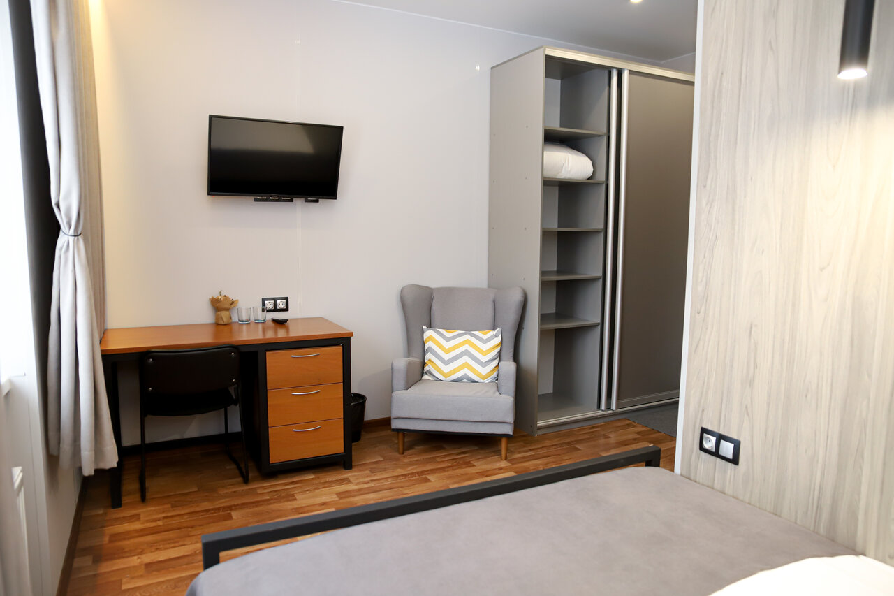 Отлично переночевали. Тип расселения правильнее хостел. В номере две кровати. Туалет, душ, кухня на этаже. Плюсы: 1) Новый отель 2) Доброжелюбный персонал 3) Парковка 4) Приемлемые цены 5) Мягкие новые пастели 6) Новая мебель 7) В туалете чисто 8) В кухне чисто Минусы 1) Яндекс завёл на дорогу по которой не проехать 2) Нет полотенец Придирки 1) Звукоизоляция отсутствует (неотличается от других похожих мест) 2) В номере не нашли папку с кратким правилами по проживанию, действиях при пожаре, прайса на допуслуги предоставляемые в отеле, рекламу доставок еды в отель и т.п. мелкой информации полезной для путешественников.