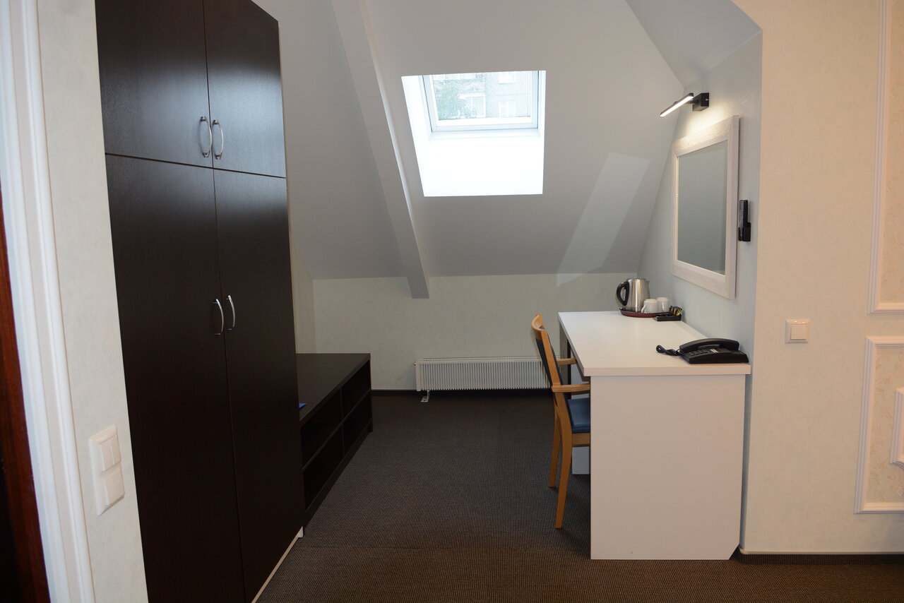 Бронировали на две ночи, обещали завтрак шведский стол. Завтрак ужасный, От шведского стола там нет ничего. Пара яиц, блины и каши. Завтрак с 7:30 до 9:00. Мы приходили в 8 и нам даже кофе не хватило. Мусор в номерах не забирают, воды в кулерах нет. Единственный плюс — когда заселялись, номер был достаточно чистый. Но он крохотный, даже дверь шкафа до конца не открывается