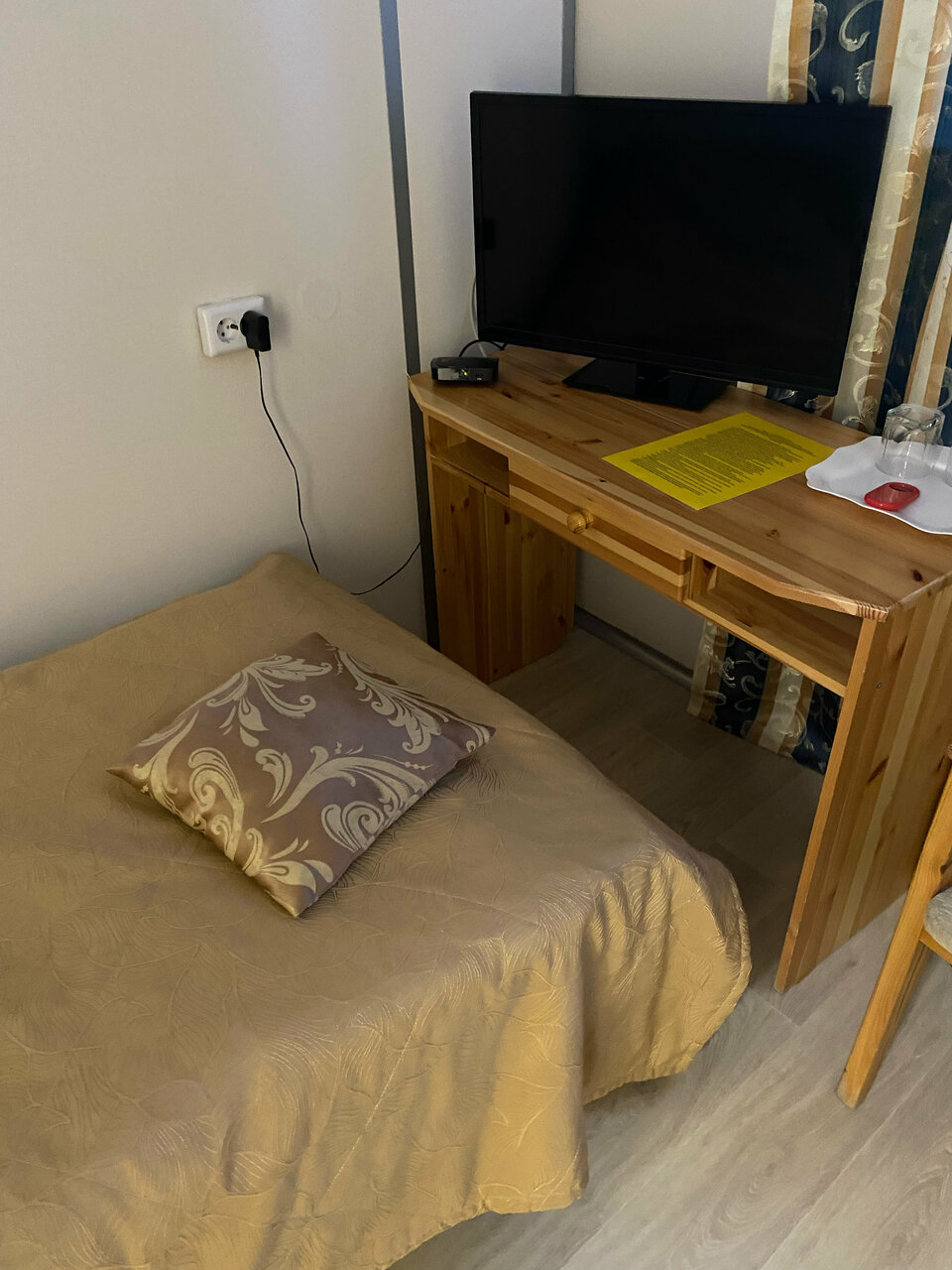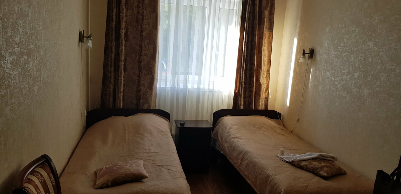 Однокомнатный номер. В номере две односпальных кровати, телевизор, бесплатный wi-fi, тумбочка, стул, вешалка для верхней одежды.Собственный санузел с комплектом полотенец и косметическими принадлежностями.
