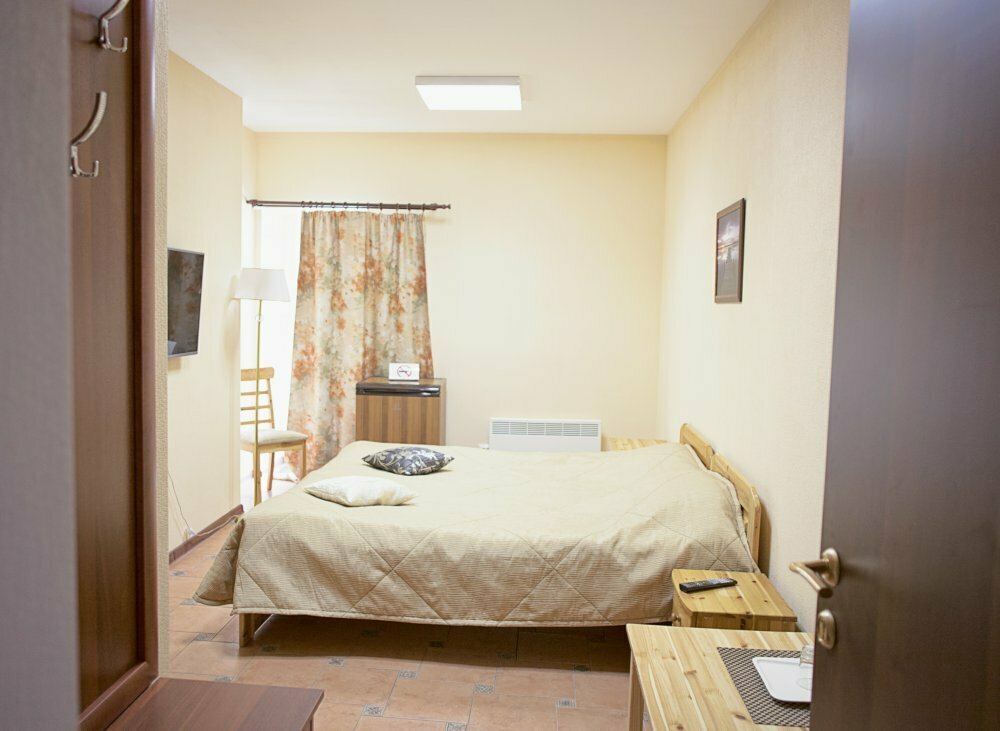 Однокомнатный номер с сауной.В номере две односпальных кровати, телевизор, бесплатный wi-fi, тумбочка, стул, холодильник, вешалка для верхней одежды.Собственный санузел с сауной, комплектом полотенец и косметическими принадлежностями.
