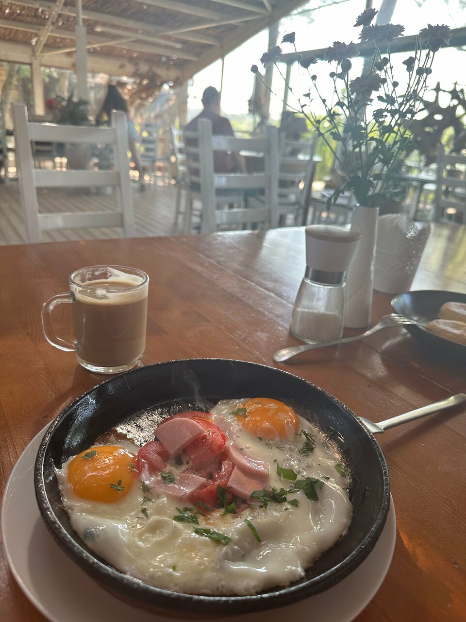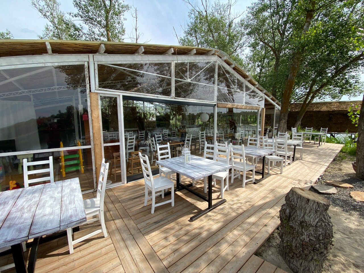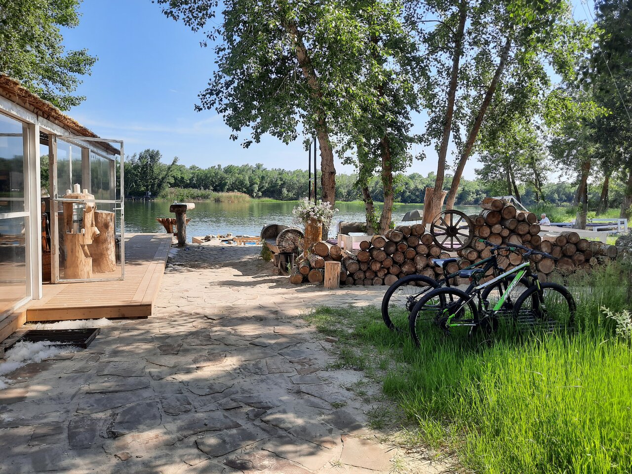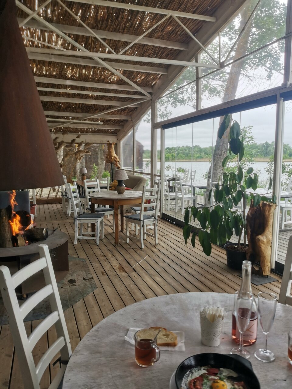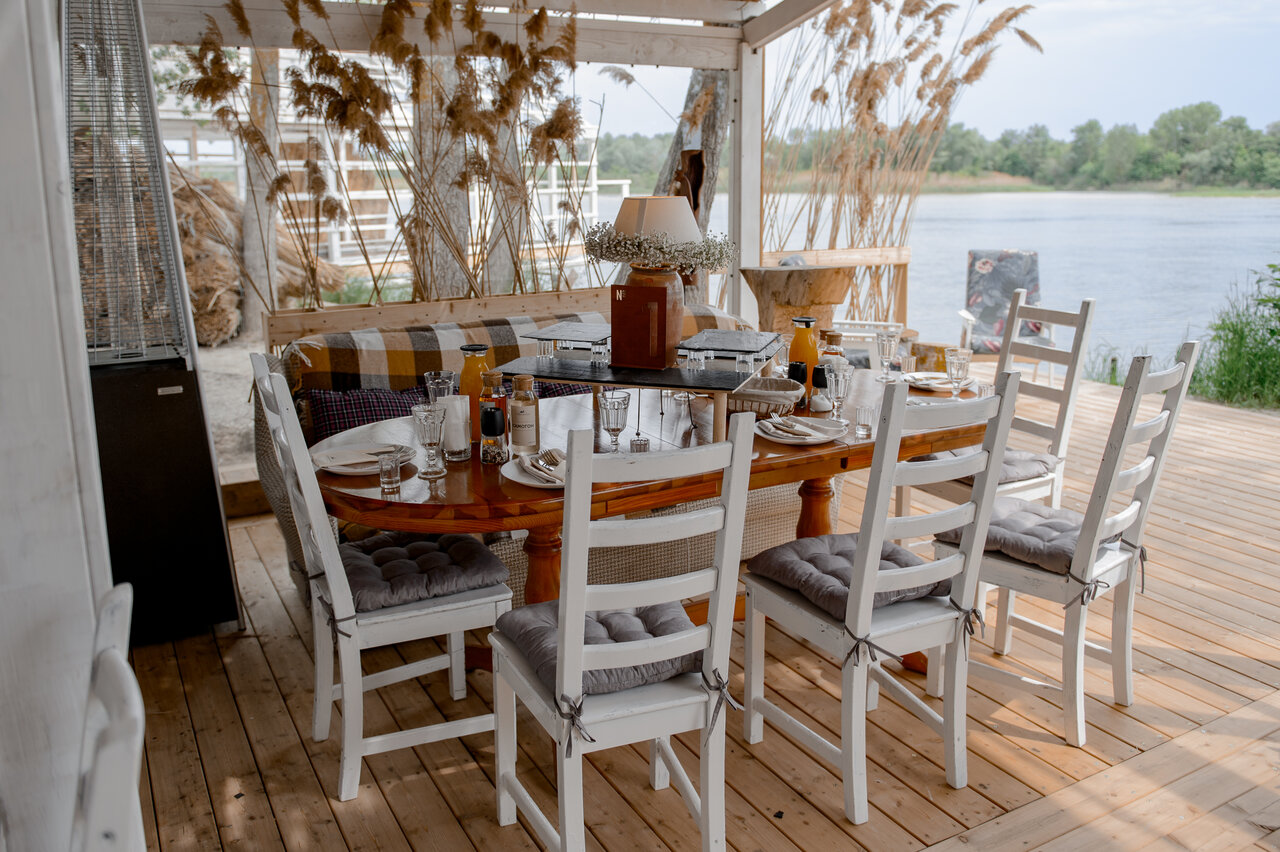 Глэмпинг очень жаркий, без кондиционера. Всю ночь гудят шлюзы и море насекомых в домике. Из плюсов: красивейший вид, вкусная кухня и приятный персонал.