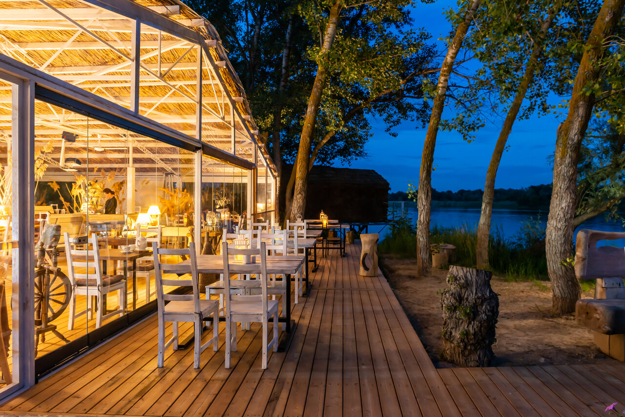 - Потрясающий интерьер ресторана и домиков.