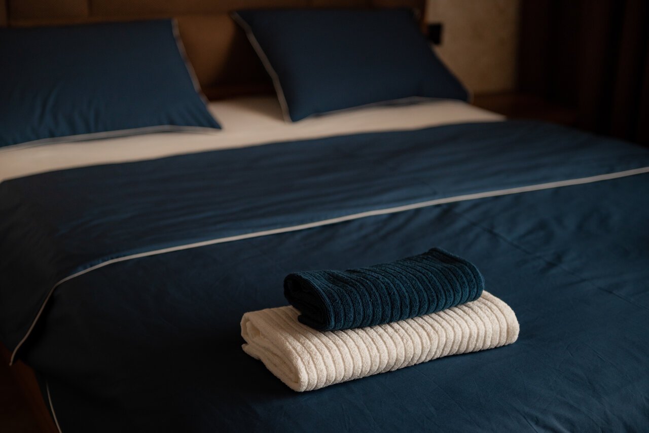 Номер категории «Стандарт» – это однокомнатный номер, площадь которого составляет 16 кв.м. (комната 12,5 м2) из окон которого открывается вид на горы. В комнате расположены совмещенные односпальные кровати, прикроватные тумбы, письменный стол, телеви