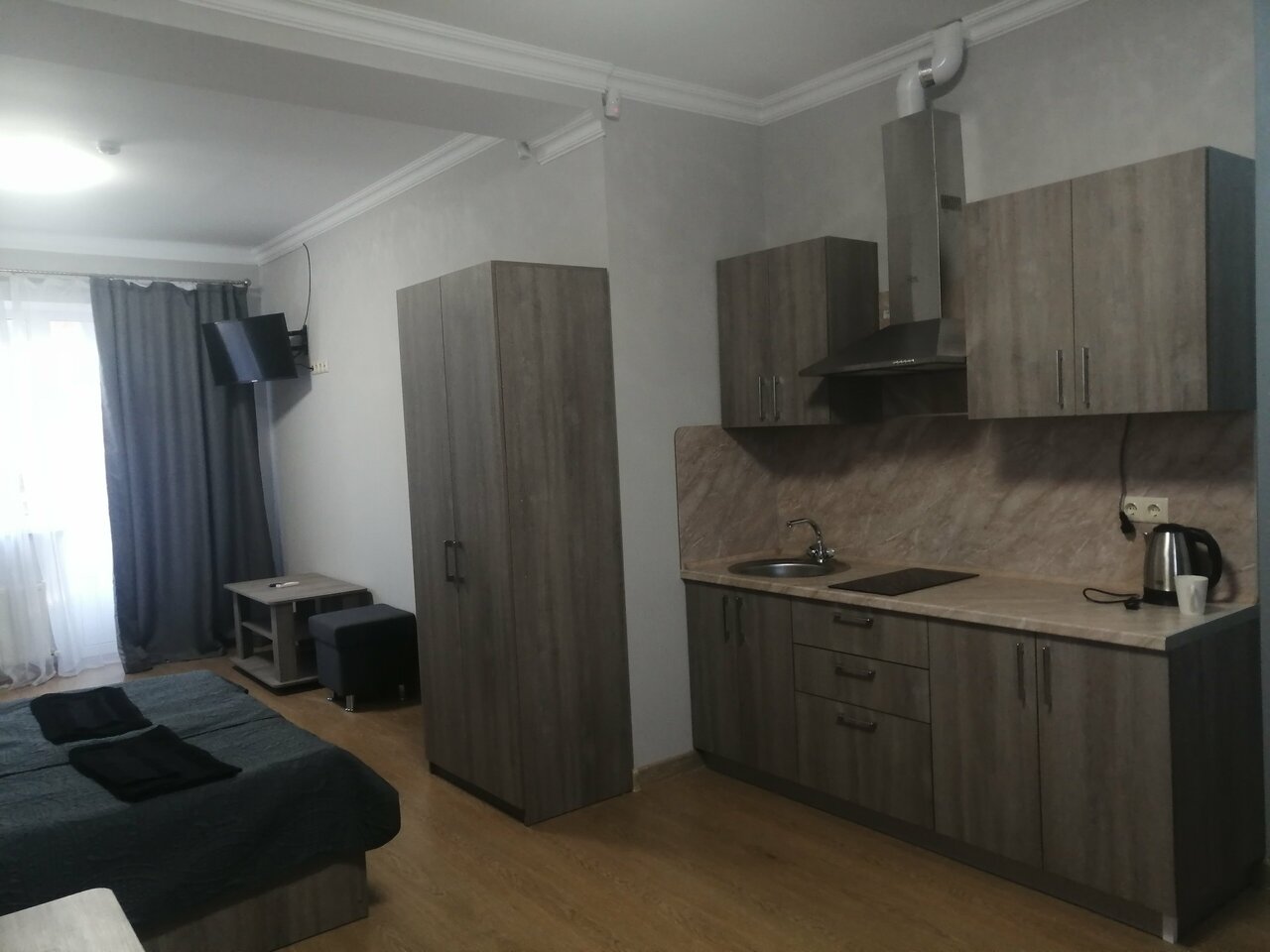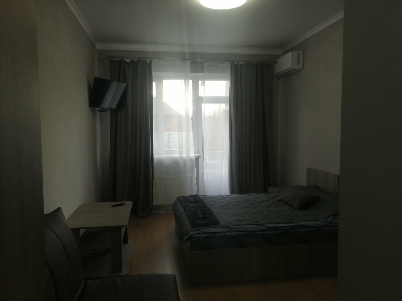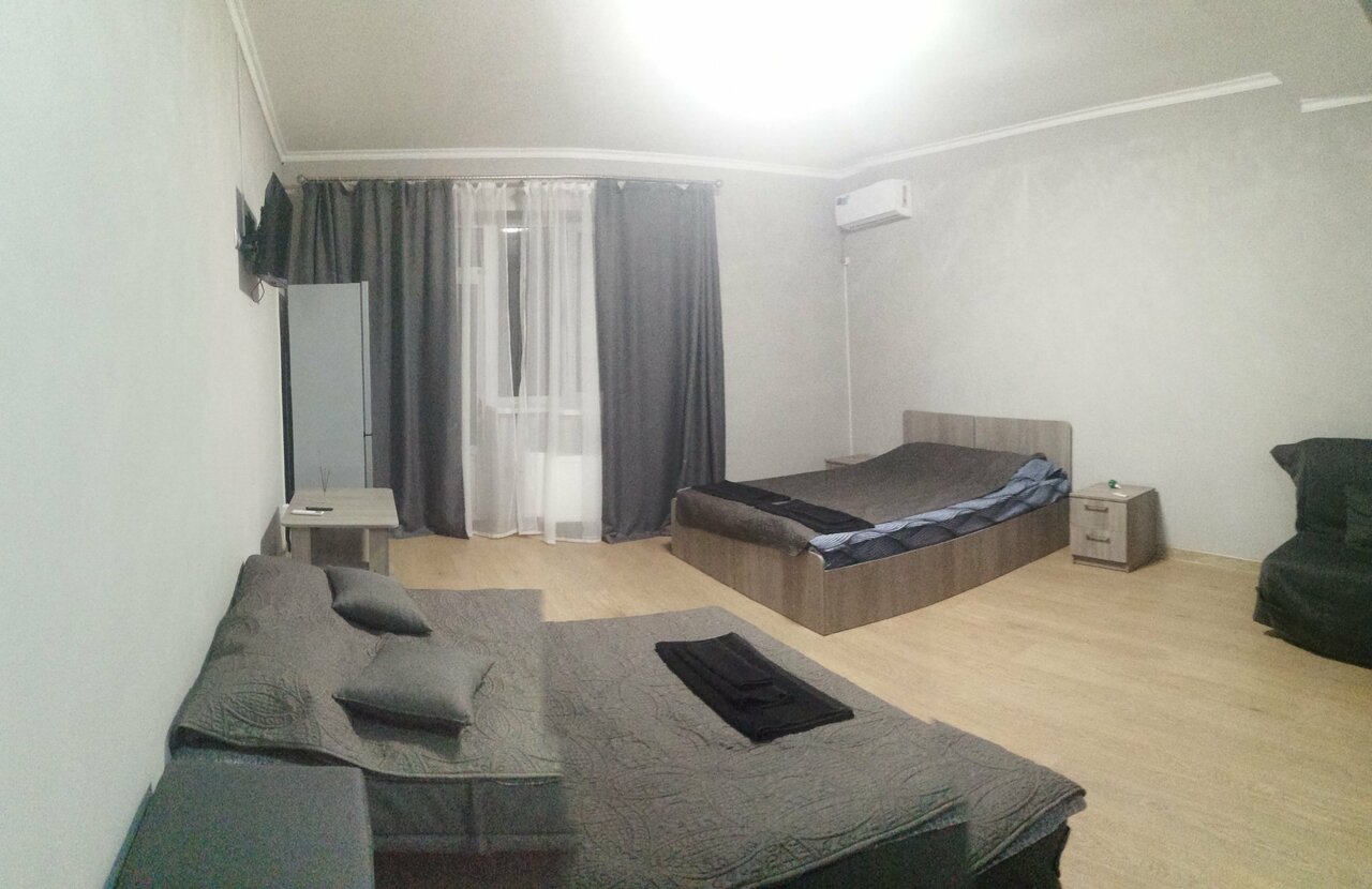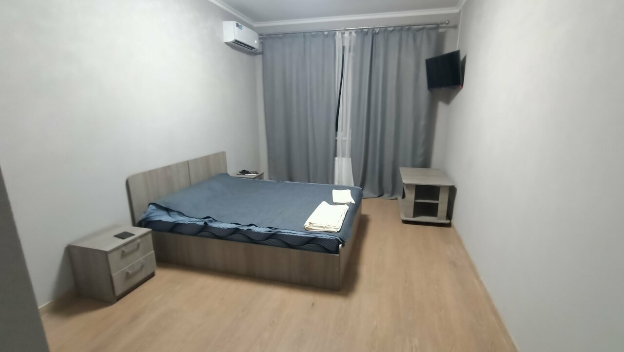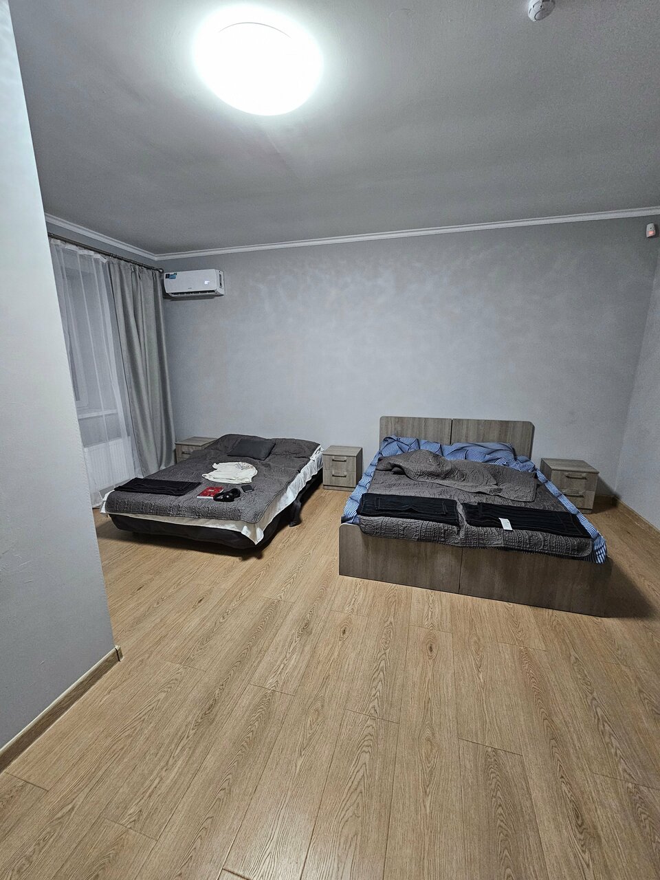 Номер состоит из двух комнат, есть собственная кухня, санузел, 2 балкона, вся необходимая посуда, чайник, плита, холодильник, телевизор, сплит, вайфай.