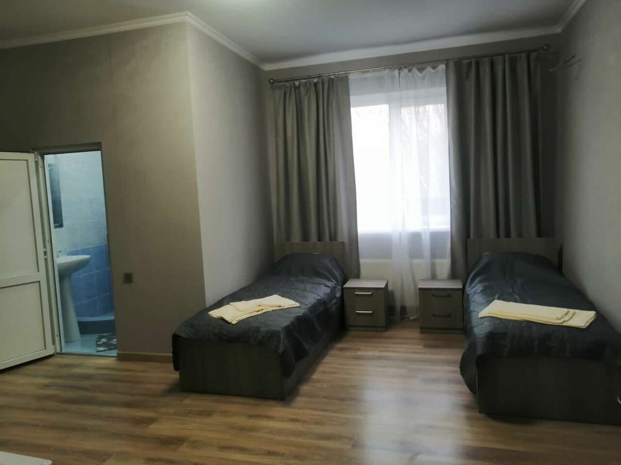 Всё на высшем уровне, номер забронировали без предоплаты, заранее включили кондиционер, вошли в охлаждённый номер. За двухместный номер оплатили 2 т, встретили в поздний час, оперативно заселили, всё показали, рассказали. Номер очень чистый, свежий ремонт, новое постельное бельё, полотенца, в номере сплит-система, мини-холодильник, телевизор, WF, рядом кухня, можно приобрести по рыночной цене пельмени, вареники, блинчики. Возможность набрать кипяток с собой в дорогу. Кофе, сахар бесплатно. 10 из 10