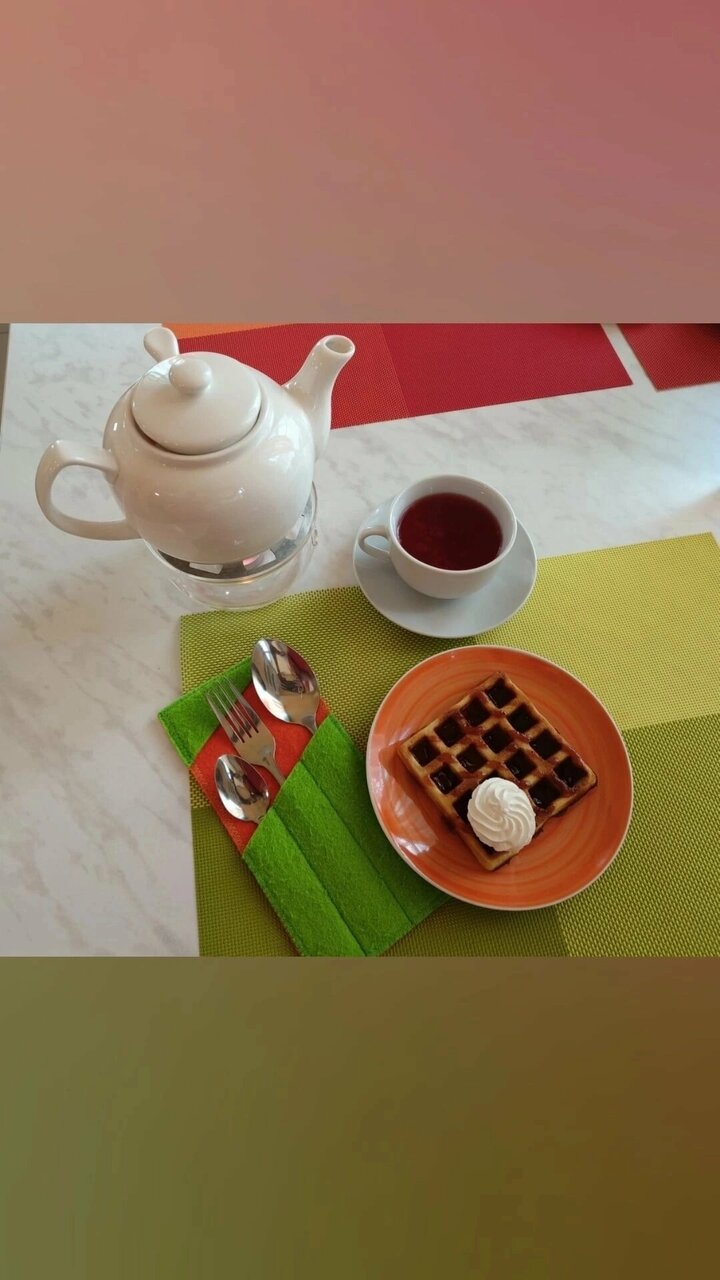 Расположен чуть в глубине от трассы, тихо, можно спокойно отдохнуть .Очень уютно. Дом новый, просторный. Большая парковка. Хорошая отделка, новая мебель и сантехника. Приехали поздно, сотрудники нас быстро поселили. Кухня большая, огромное количество посуды и кухонной техники. Предложили воспользоваться на завтрак запасом замороженных полуфабрикатов из холодильника. Оплату потом просто перечислить на карту. Мы выбрали блинчики с творогом.