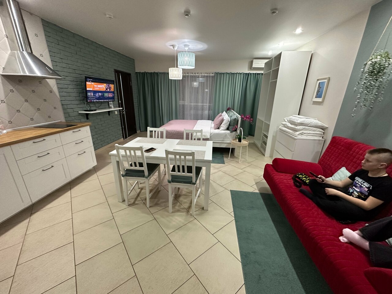Чисто, опрятно. Новый ремонт. Кондиционеры. Дорогие завтраки. Яичница с салатом от 500 рублей. Если номер с кухней, то завтрак можно приготовить самому. На кухне есть все. Место отличное.