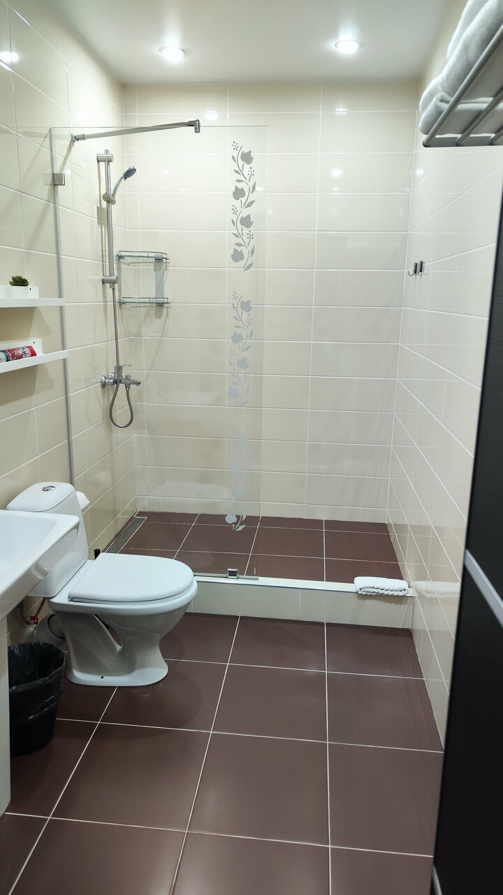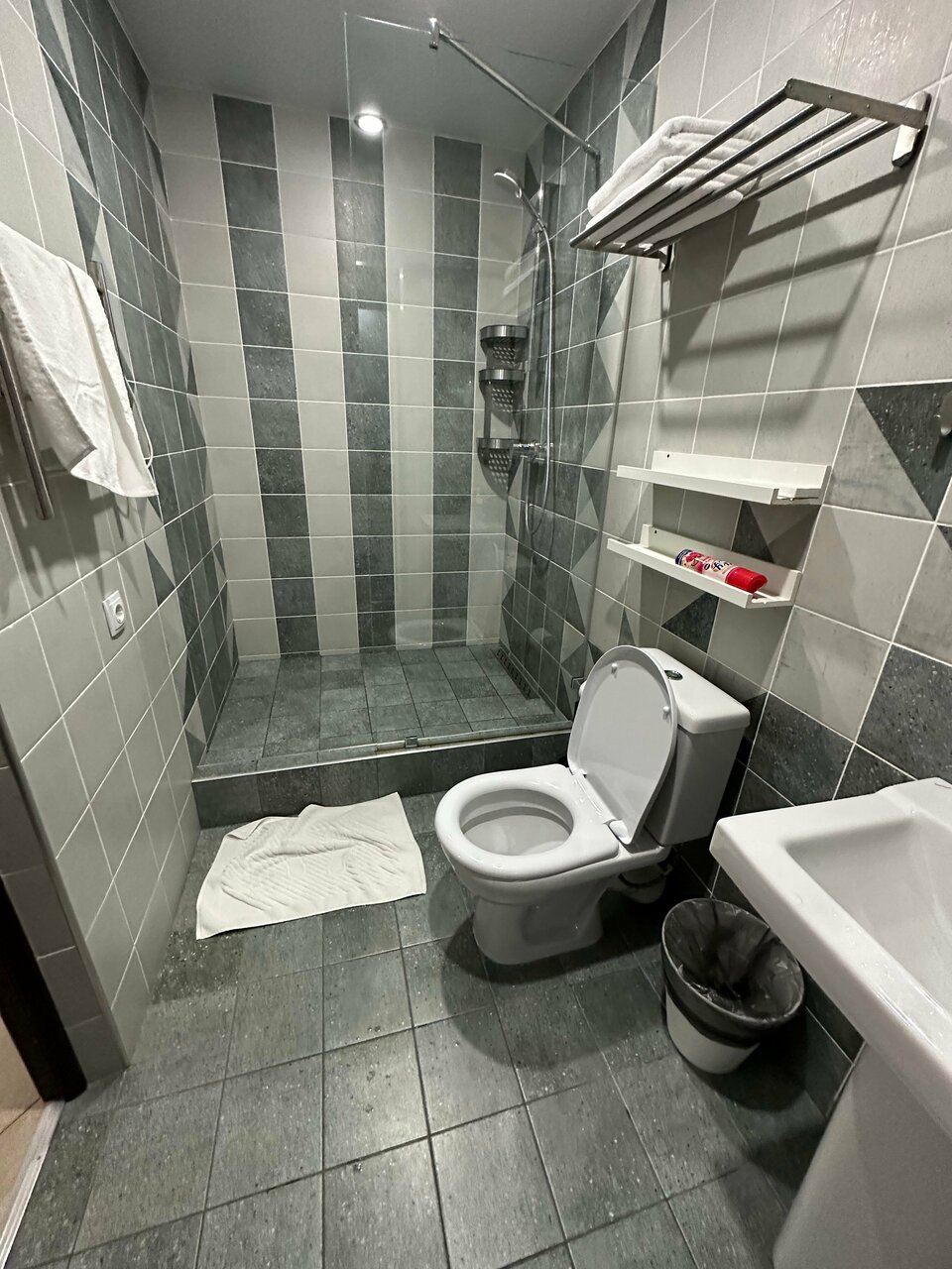 Отличный отель, называется хостелом наверное что туалет с душем совместный. Всё новенькое, туалетная бумажка как дома