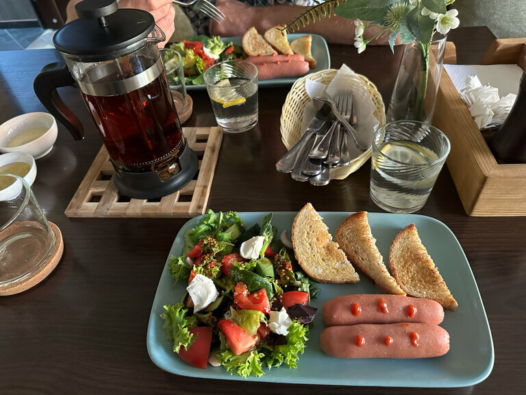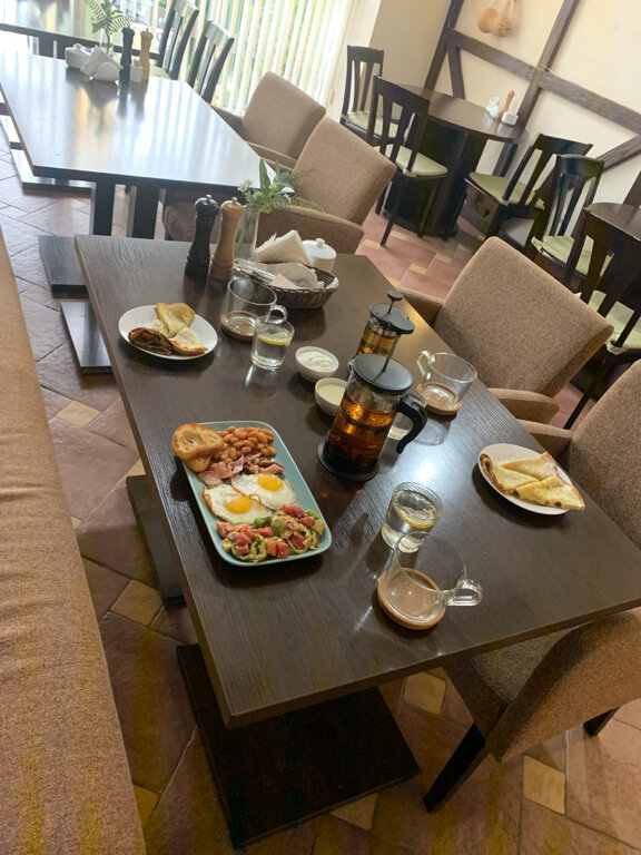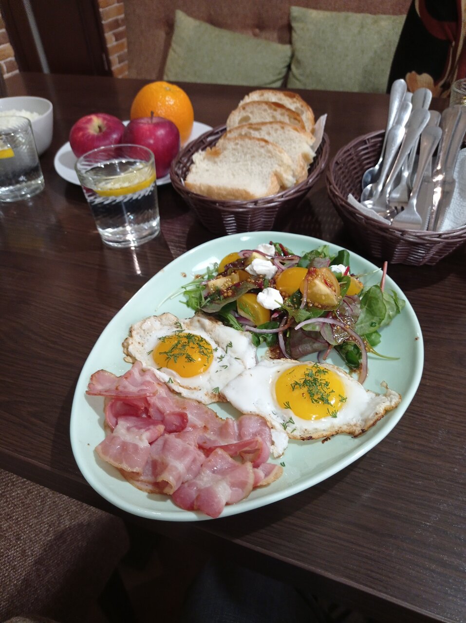 - Дорогие завтраки (яичница с салатом от 500 руб.).
