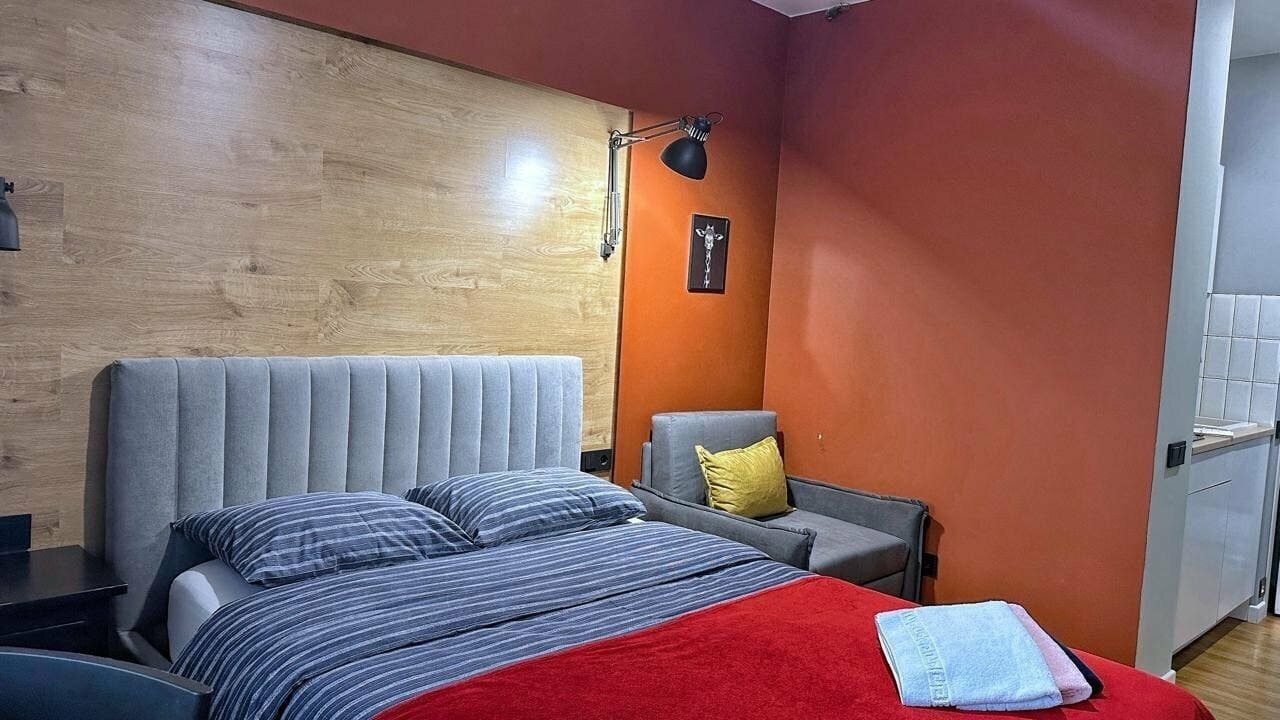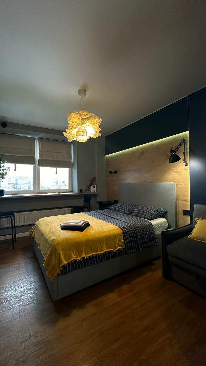 'Счастье — это место, где вы чувствуете себя как дома. Добро пожаловать в Апартаменты Happy People!'Атмосферная студия для 2х гостей в МФК 'Созвездие' в центре города! — идеальна как для семейного отдыха, так и для командировки.