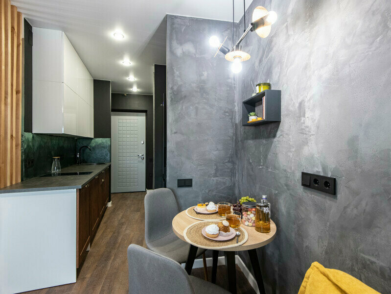 Уютная студия, все нужное есть, удаленное заселение Из минусов — стены уже требуют обновления так как немного заляпаны.