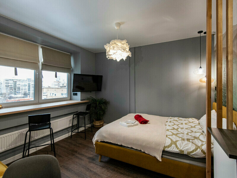 Хорошие апартаменты, снимал на одну ночь. Администратор приветливая и помогала по всем вопросам Приятно удивили зубные щетки, гель для душа и шампунь, а также бесплатный вайфай и смарт тв В общем и целом, отличный вариант. НО Места маловато, стенки тонкие(слышно как соседи входят и выходят) Из-за маленького помещения, в апартаментах очень жарко, явно не хватает кондиционера Если не обращать внимания на мелкие детали, то очень даже хорошо!
