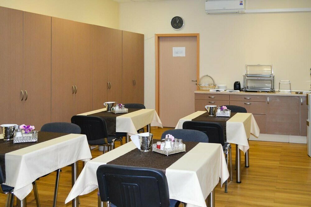 Удобный комфорный номер. Тихое место. Недолеко от жд станции. Много общественного транспорта. Завтрак вполне плотный, из нескольких блюд на выбор, без излишеств, включен в стоимость. Возможен ужин также в стоимости номера (удобно для командировочных).