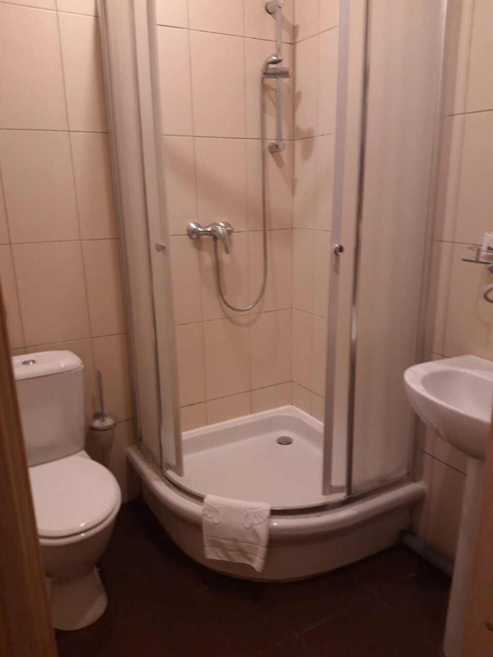 Гостиница заявляет себя на три звезды, но одну заезду снимаю за отсутствие кондиционеров в номерах. В конце июня, когда на улице +32, в номере жарко. Что касается завтрака, есть можно, типа ‘Шведский’ стол, ну такой себе… В номерах чисто, сантехника исправна, белье чистое, матрацы не сильно продавленные. Всё портить отсутствие кондея.