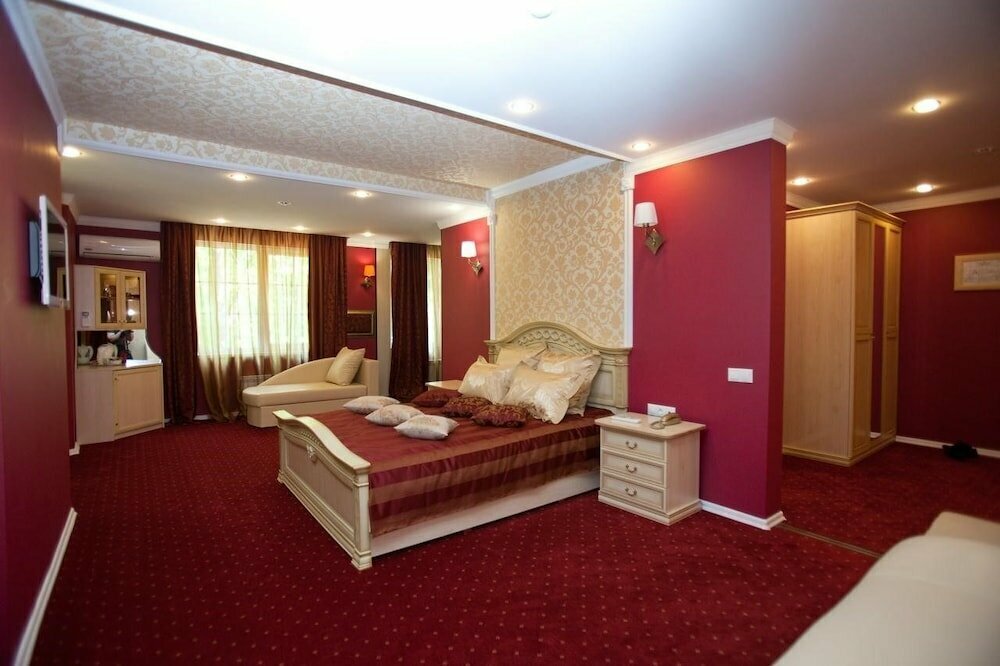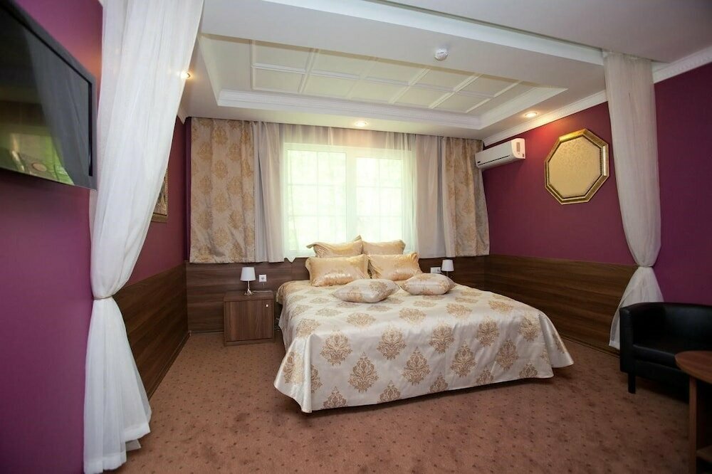 Удобства: — Бесплатная парковка, трансфер (платный/аэропорт). — Питание: ресторан, кафе, разнообразные завтраки (включены). — Досуг: сауна, баня, джакузи, караоке, бильярд, терраса. — Для гостей: номера с животными, кухонными уголками, детские кроватки, химчистка, прачечная.