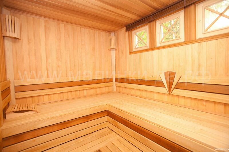 Гостиничный комплекс «Малинки» предлагает Вам посетить 2-х этажную сауну общей площадью 120 м. кв..1-й этаж сауны: раздевалка со всем необходимым (махровые тапочки, набор личной гигиены, полотенца, простыни, шапочки для сауны), 3D SMART TV, кухня