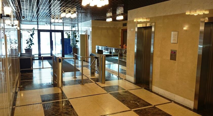 - Сложная пропускная система (отдельные карты для БЦ и гостиницы).