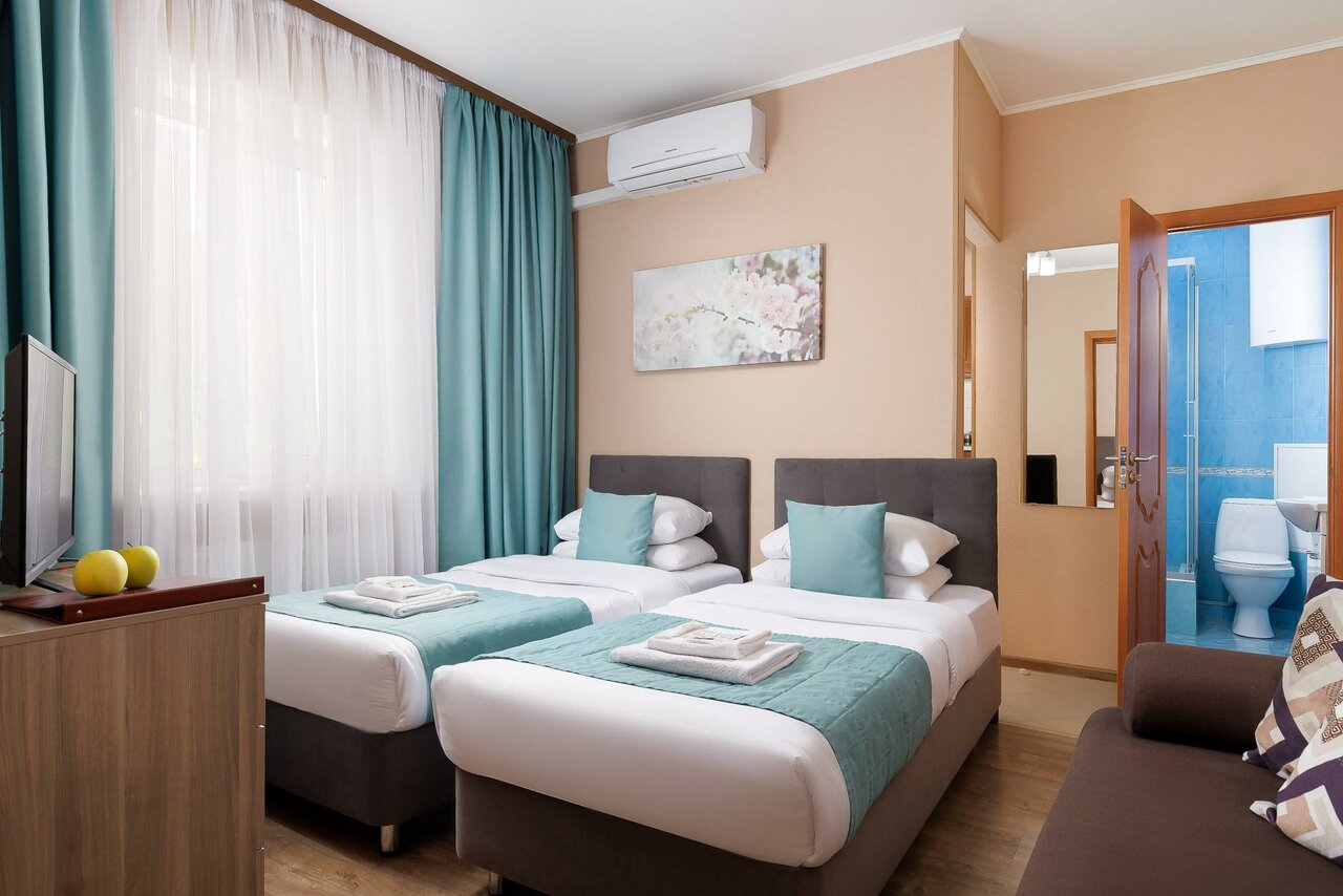 - Сервис на уровне, персонал приветливый и всегда на связи.; Много номеров, обычно есть свободные.; Наличие кухни и стиральной машины в некоторых номерах.; Тепло в номерах.; Хорошее обслуживание.