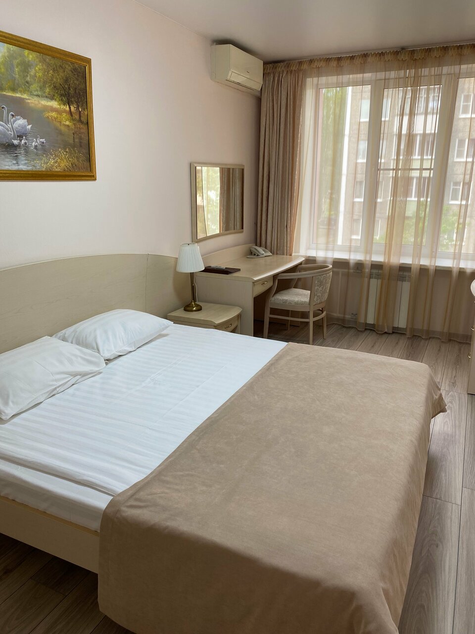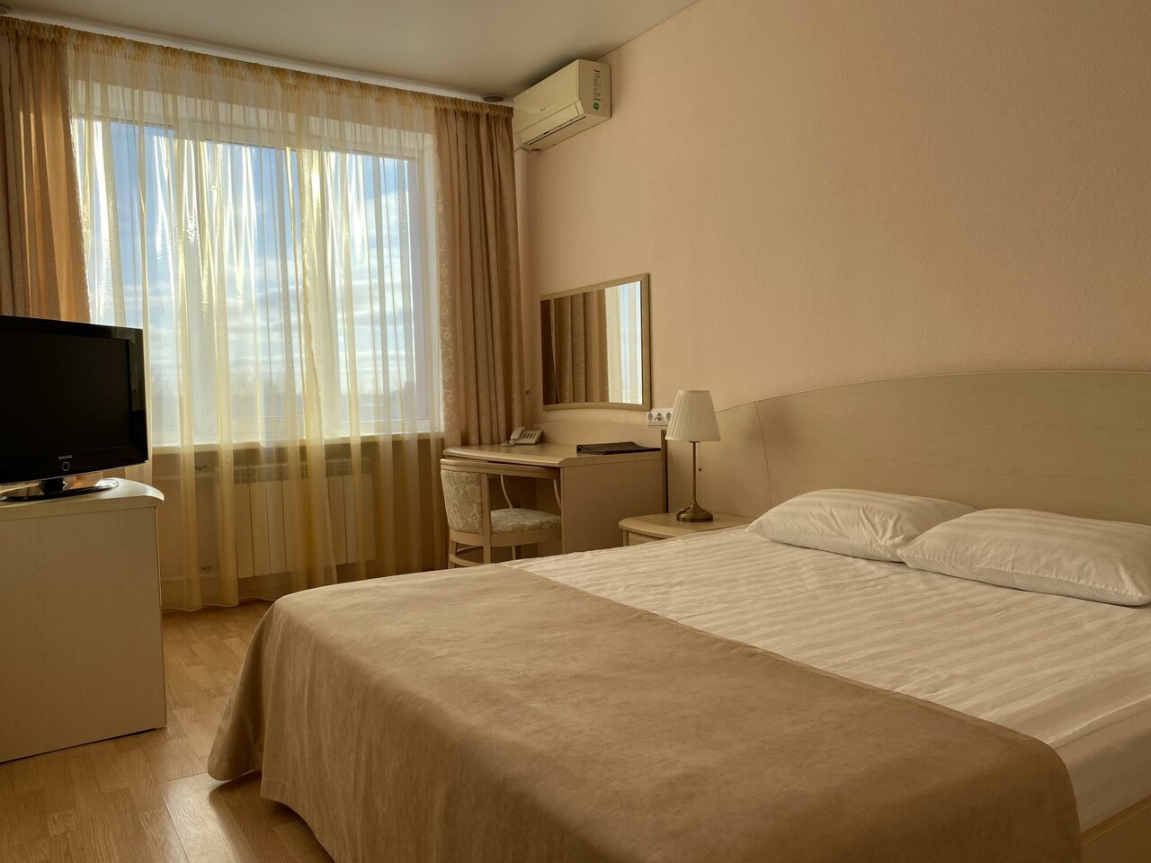 Номер 'Стандарт двухместный' - комфортабельный, небольшой номер на двоих с двуспальной кроватью , телевизором, шкафом для одежды и кондиционером.