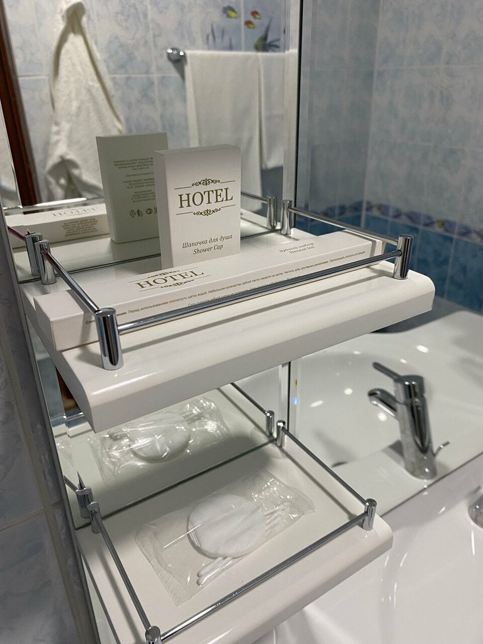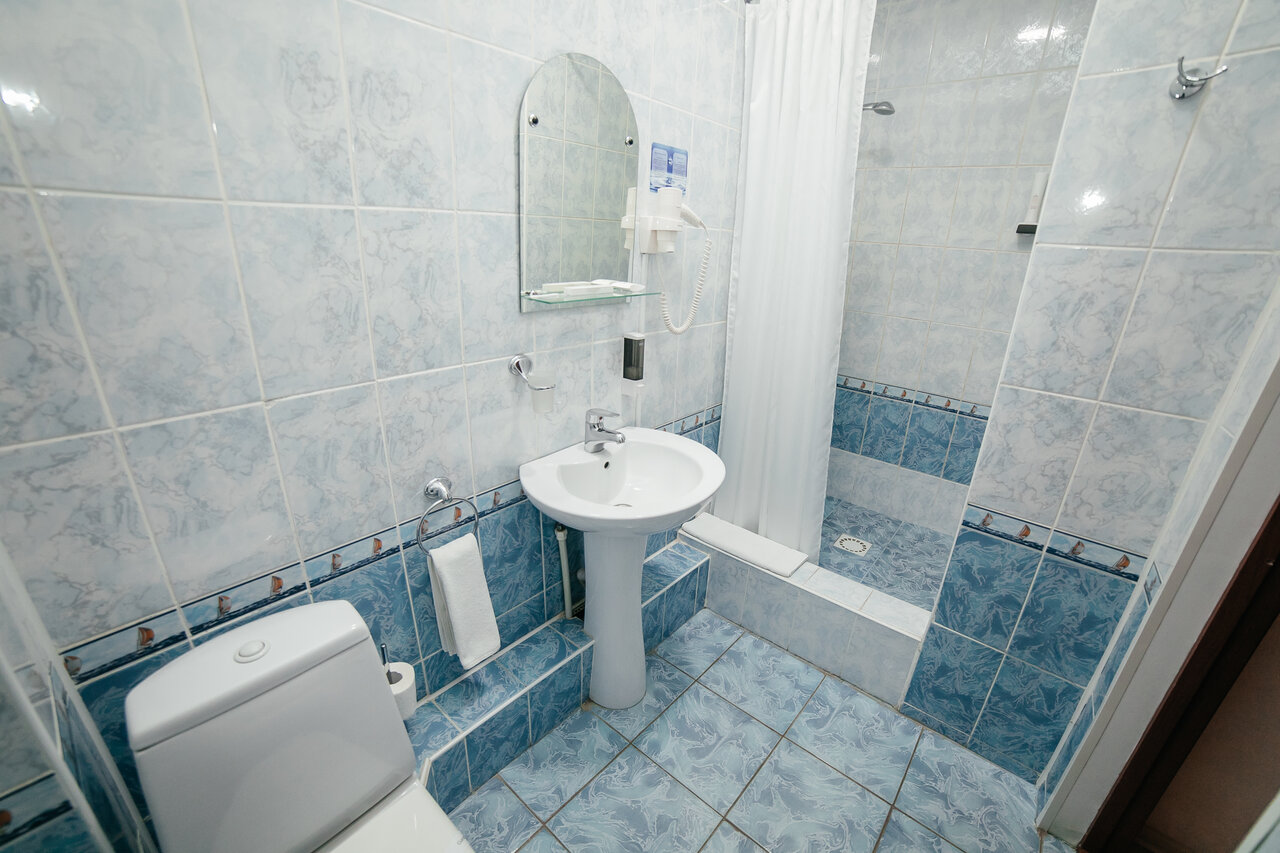 - Наличие тапочек, полотенец, душевого набора.