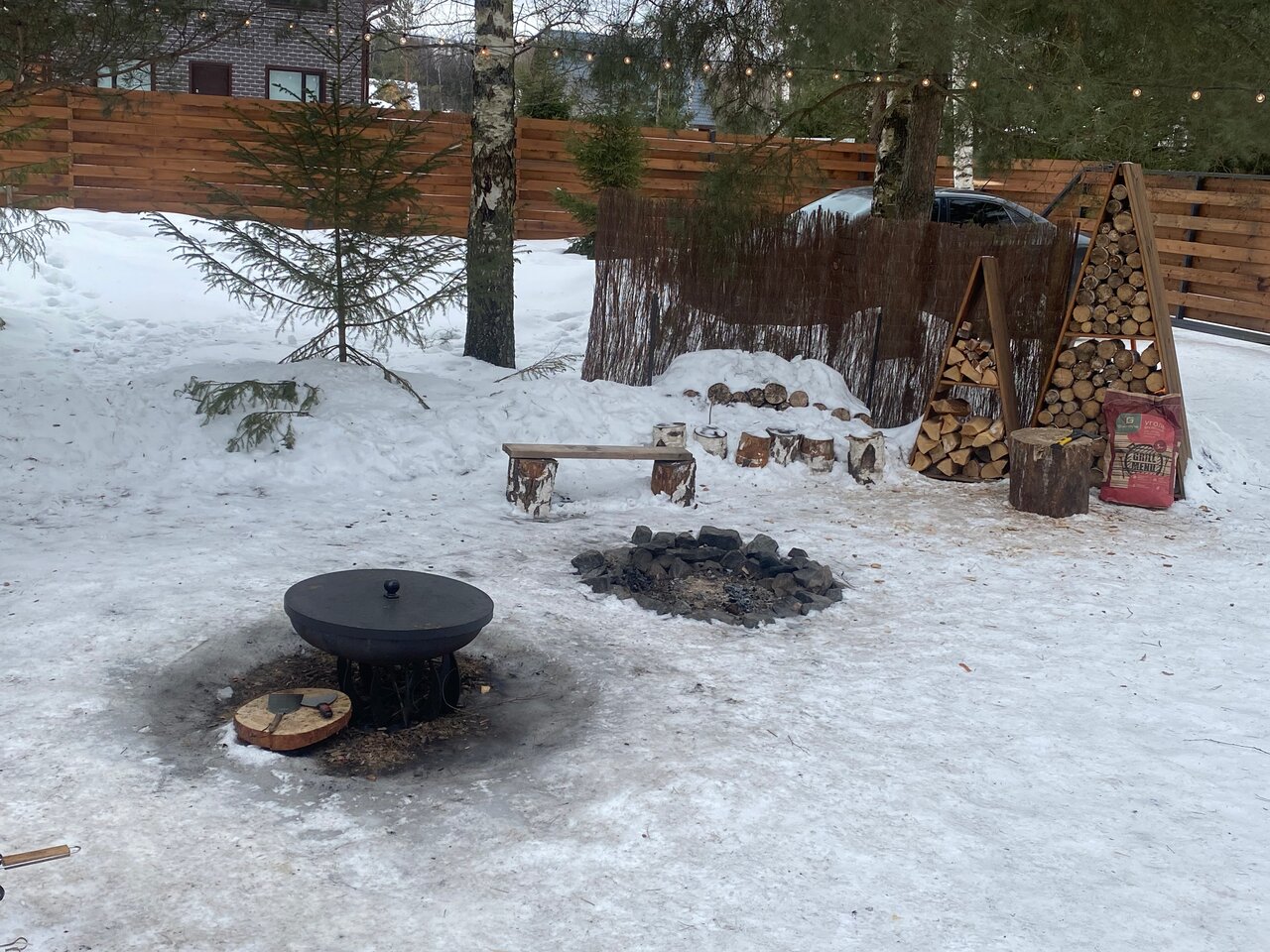- Зона для костра, мангал, дрова.