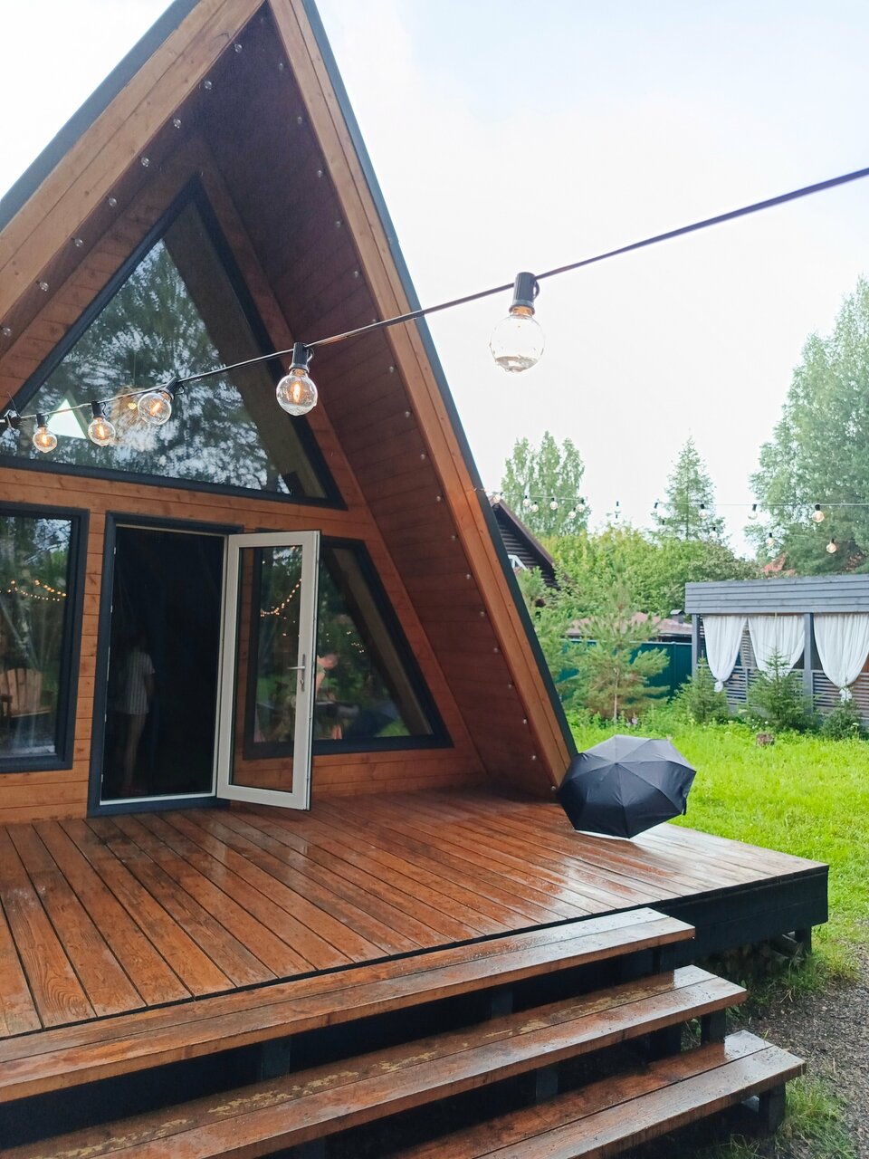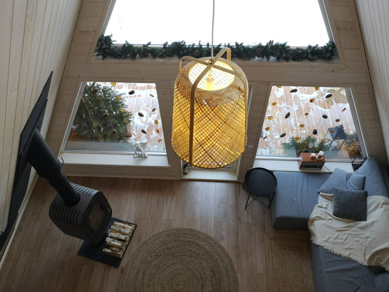 - Красивое оформление (в том числе новогоднее).; Подходит для романтического и семейного отдыха.; Хорошо оборудованный домик (кухня, санузел, камин).; Уютная и чистая обстановка.; Зона для костра, мангал, дрова.