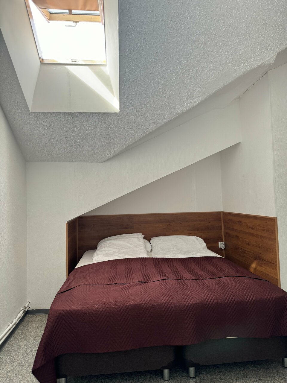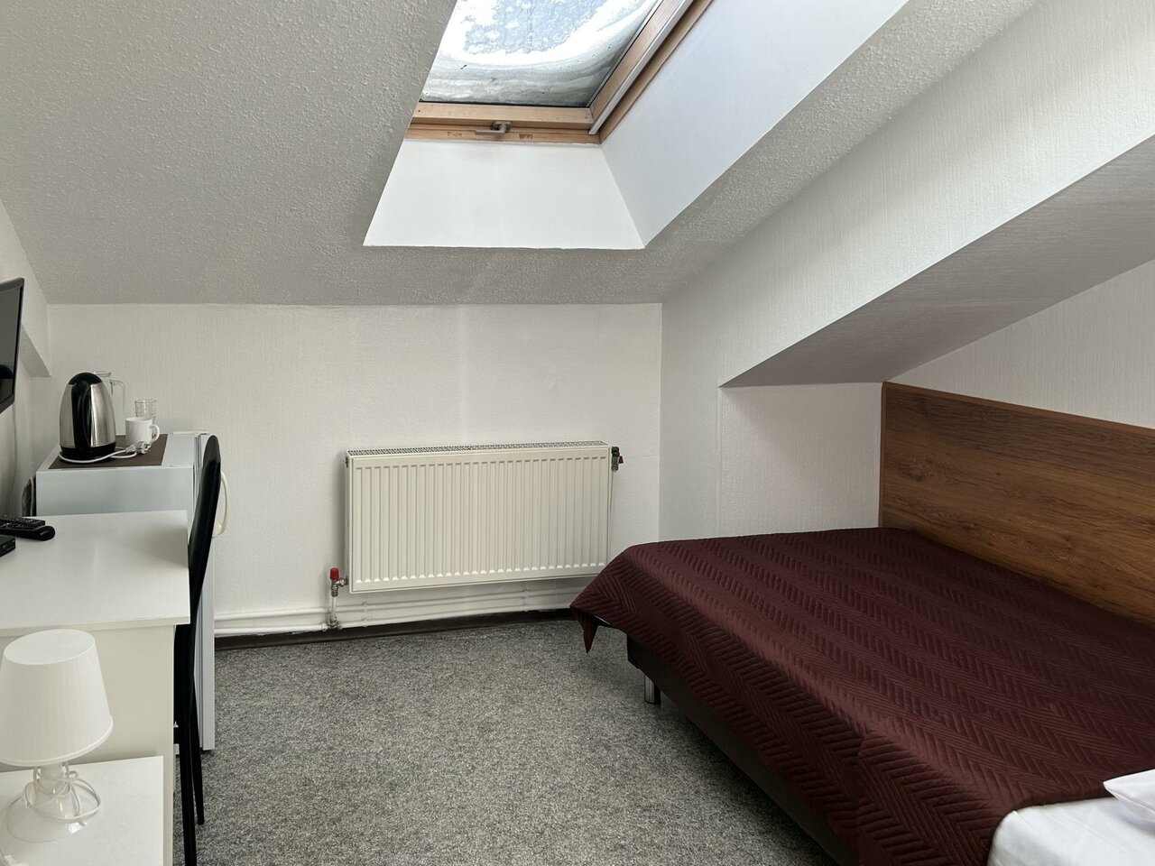 Небольшой отель, завтрак шведский стол. Много одноместных номеров. Во многих окна на крыше. Самый центр города.