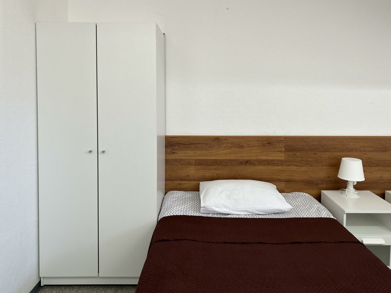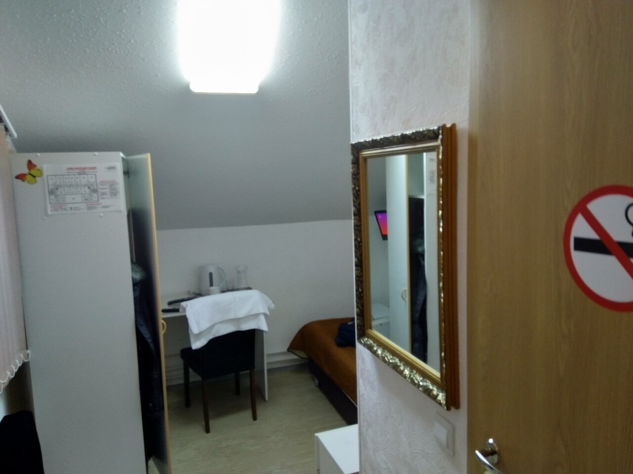Супер жил двое суток все чисто красиво жил в одноместном номере все беленькое чистенькое кроватка замечательная полотенца белоснежные в номере ты холодильник чайник светильник имеется в тумбочке удлинитель. Просто супер….
