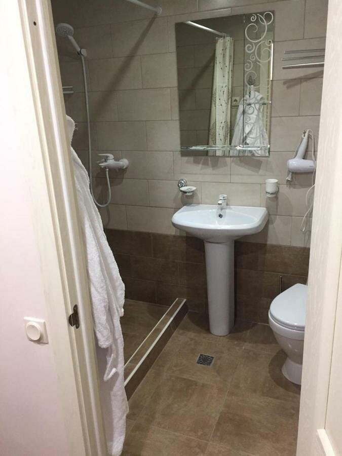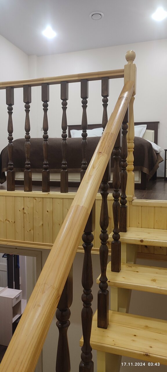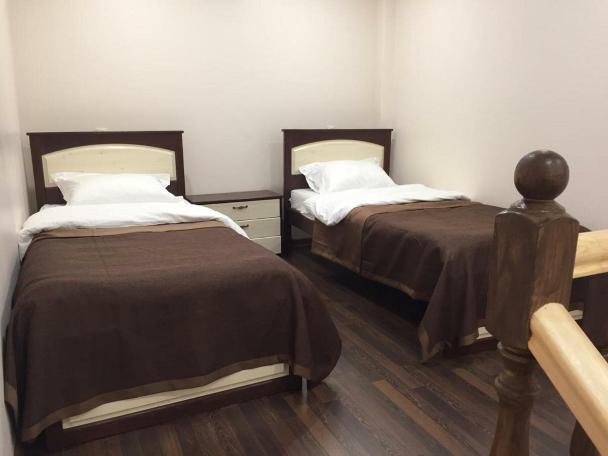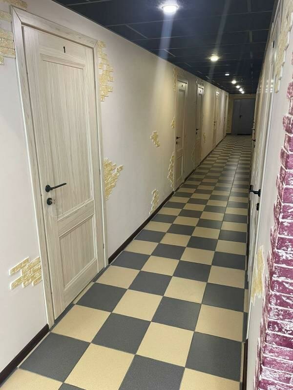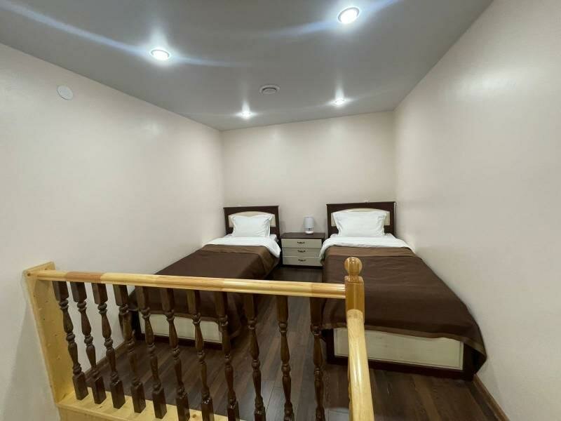 На первый взгляд обычная гостиница, но есть минусы: неприятный запах из санузла, тараканы (одного живого видела, убежал). Из плюсов: второй этаж прям в номере, там кровати, на первом санузел и телевизор с диваном. Есть окно, с балконной дверью, куда можно выйти на улицу прям из номера, хорошо для курящих.