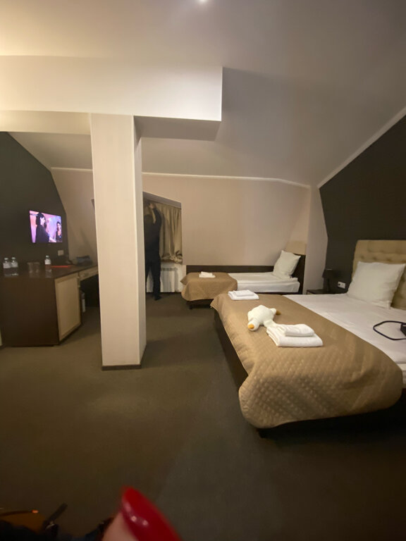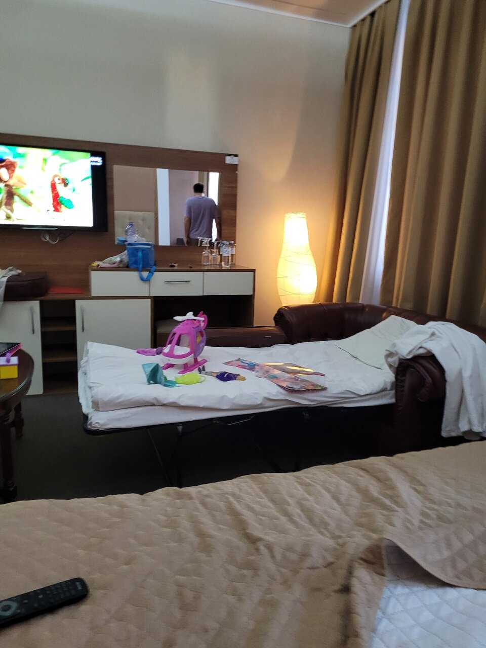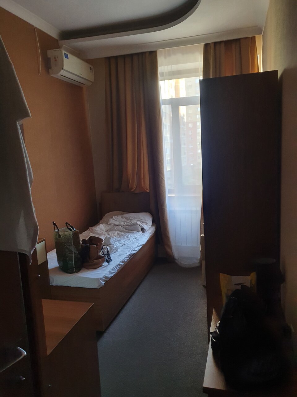 селили на длительный срок, большим составом. через 2 недели добились чтоб нас переселили в нормальный отель. заметки за эти 2 недели: все разваливается и отваливается. очень плохо убирают, везде чёрные волосы и грязь комнаты маленькие. нет кухни, чайника, холодильник еле холодит кулер на 1 и 4 этаже, на четвёртый воду никто не поднимает лифта нет завтрак отвратительный, каждый день одно и тоже. ещё и наорут на тебя, если не доел администратор на добрый день отвечает косым взглядом окна выходят с одной стороны на детскую площадку, с другой на стройку. плохо работает вайфай телефон в номере без батареек на 2 этаже стабильно проходит приём девушек лёгкого поведения могу продолжать бесконечно. на 1-2 ночи сойдёт, можно потерпеть, но опять же ценник ломят как за хороший отель, а по факту гадюшник