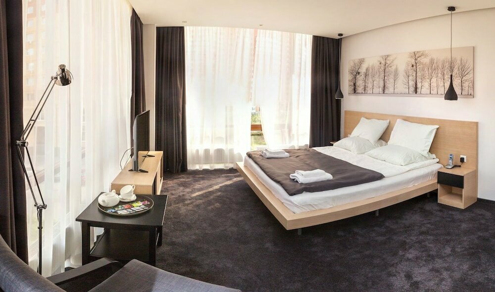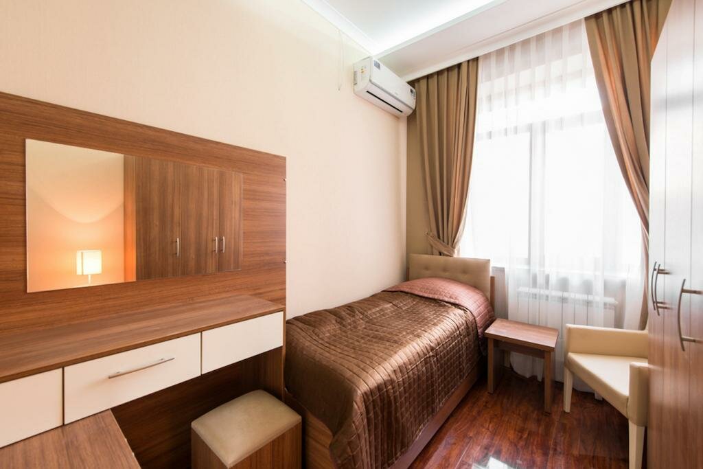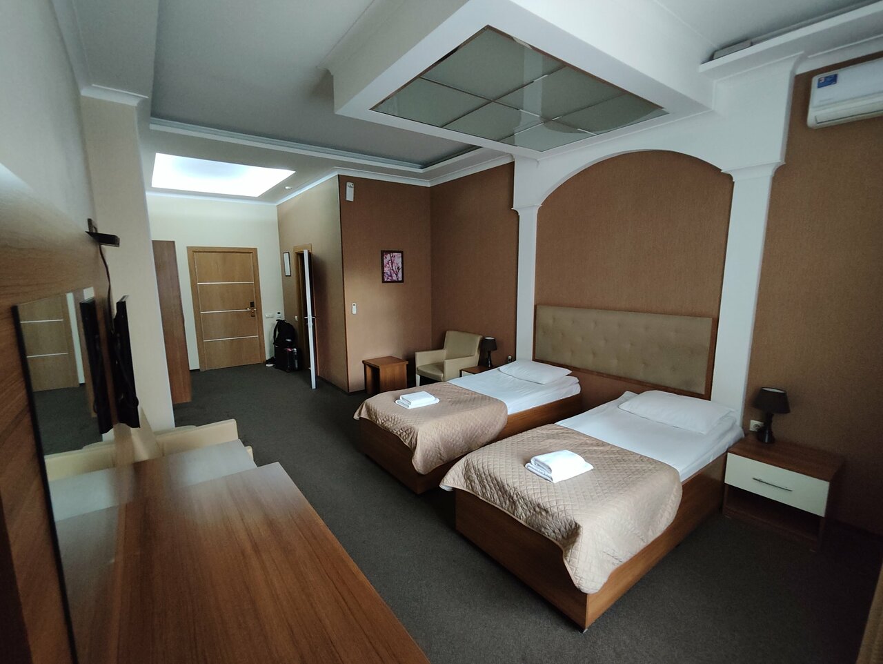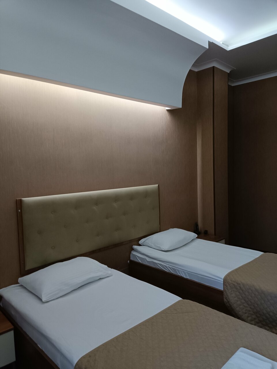 селили на длительный срок, большим составом. через 2 недели добились чтоб нас переселили в нормальный отель. заметки за эти 2 недели: все разваливается и отваливается. очень плохо убирают, везде чёрные волосы и грязь комнаты маленькие. нет кухни, чайника, холодильник еле холодит кулер на 1 и 4 этаже, на четвёртый воду никто не поднимает лифта нет завтрак отвратительный, каждый день одно и тоже. ещё и наорут на тебя, если не доел администратор на добрый день отвечает косым взглядом окна выходят с одной стороны на детскую площадку, с другой на стройку. плохо работает вайфай телефон в номере без батареек на 2 этаже стабильно проходит приём девушек лёгкого поведения могу продолжать бесконечно. на 1-2 ночи сойдёт, можно потерпеть, но опять же ценник ломят как за хороший отель, а по факту гадюшник