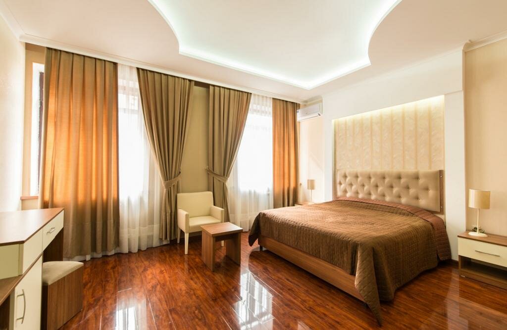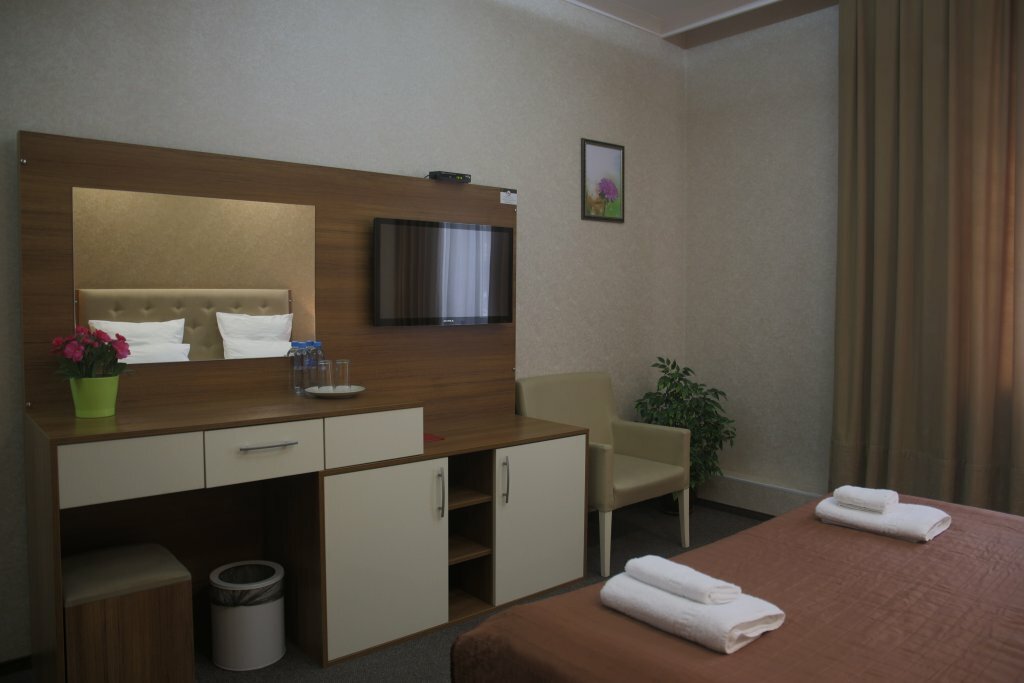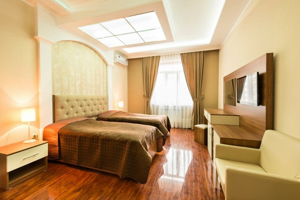 Услуги: — Номера от 3500 ₽/ночь с кондиционером, Wi-Fi, ТВ, мини-баром, санузлом и звукоизоляцией. — Питание: завтрак (американский), ресторан, кафе, бар, детское меню. — Удобства: бесплатная парковка, трансфер (платный), химчистка, прачечная, сейф, камера хранения. — Дополнительно: фен, халат, тапочки, утюг, джакузи, круглосуточная стойка регистрации.
