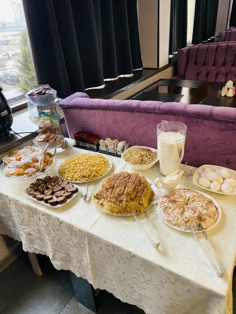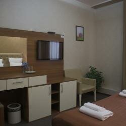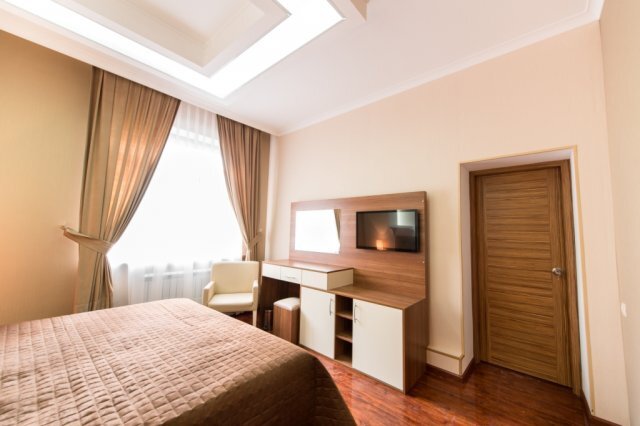 - Включенный завтрак.; Наличие необходимых вещей в номере (халаты, сейф).; Удобное расположение (близко к торговому центру).; Доступная стоимость за услуги.; Чистота и аккуратность в номерах.
