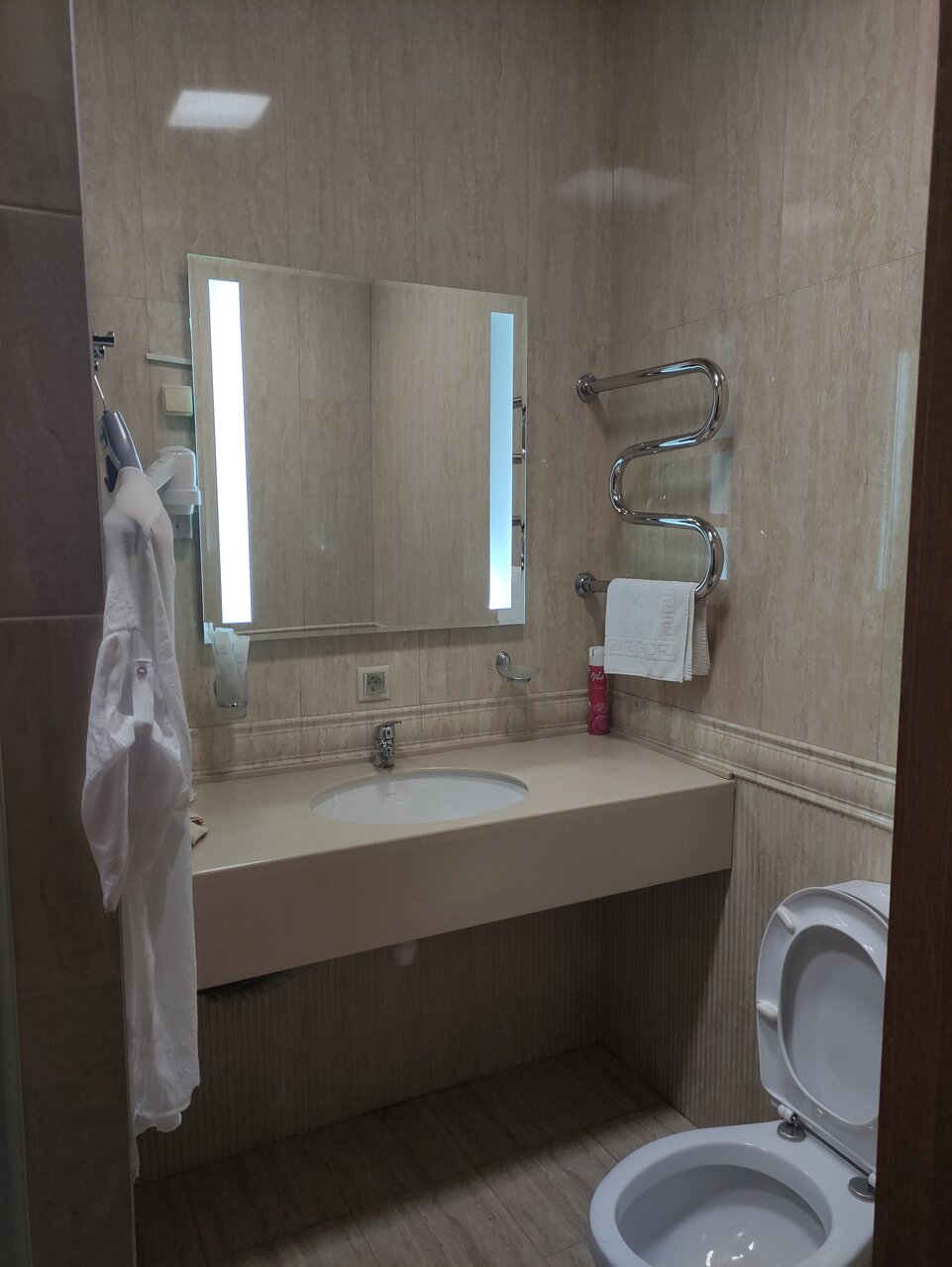 Не понравилось. Номер брали не самый дешевый, но и это не спасло от неприятностей. Не работал сливной бачок. Вернее работал , но так, что вода бежала без остановки все время нашего там пребывания и шум мешал спать нам с ребенком. Сказали при заселении, что другого номера нет , можем вернуть деньги. У нас был поздний заезд и искать где то другую гостиницу с ребенком в ночи нн решилась. Завтраки скудные , в помещении столовой холод собачий