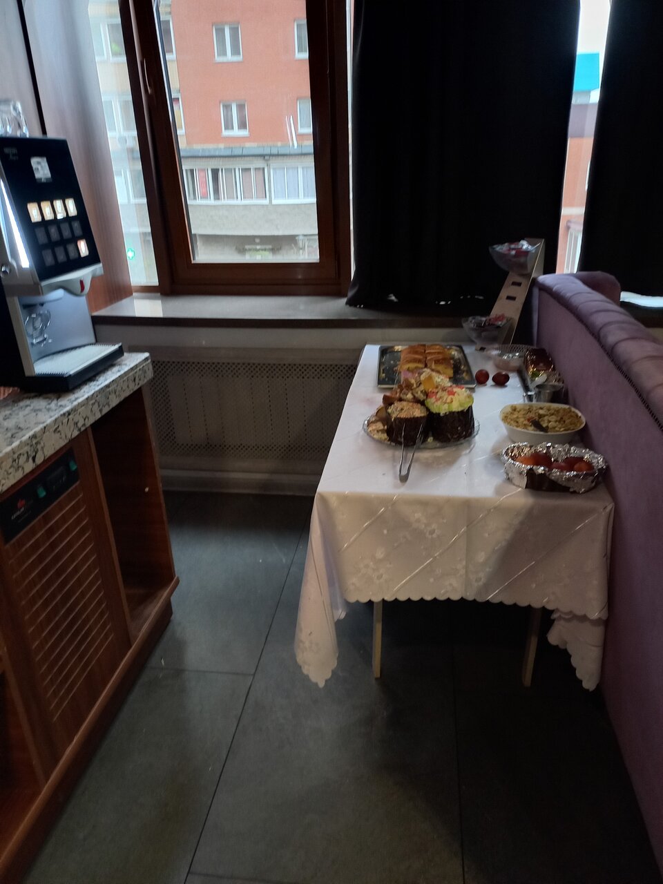 Всё просто замечательно, обстановка хорошая, персонал приветливый и заботливый, для меня(простого приезжего в командировку ) впечатление не дом конечно, но уютно, красиво , и приятно. Спасибо большое!!!!