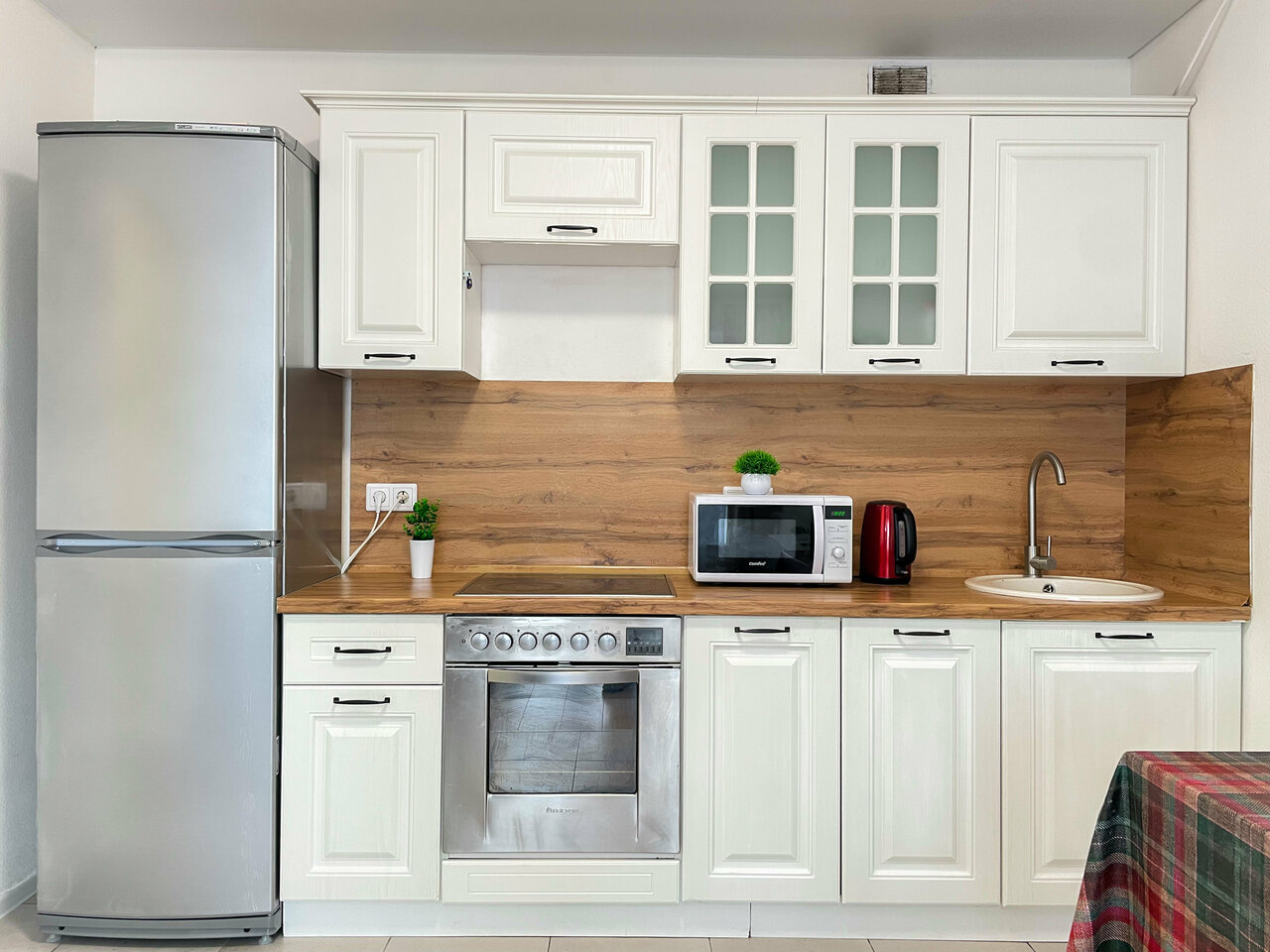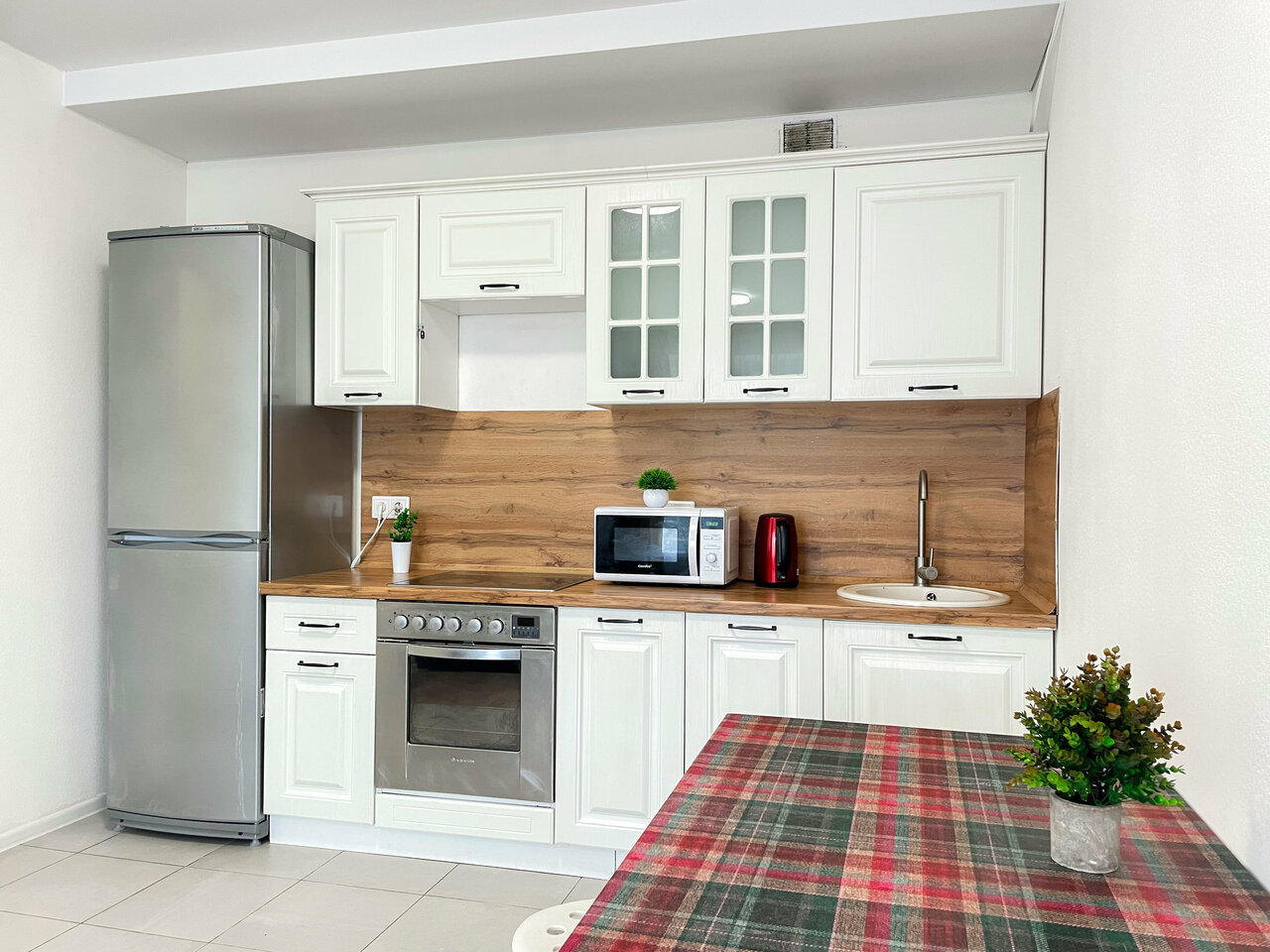 Для гостей доступны номера с кухонным уголком (плита, микроволновка, чайник, посуда), холодильником, телевизором, феном и бесплатным Wi-Fi. В апартаментах есть лифт, парковка и стиральная машина. Уборка проводится регулярно.