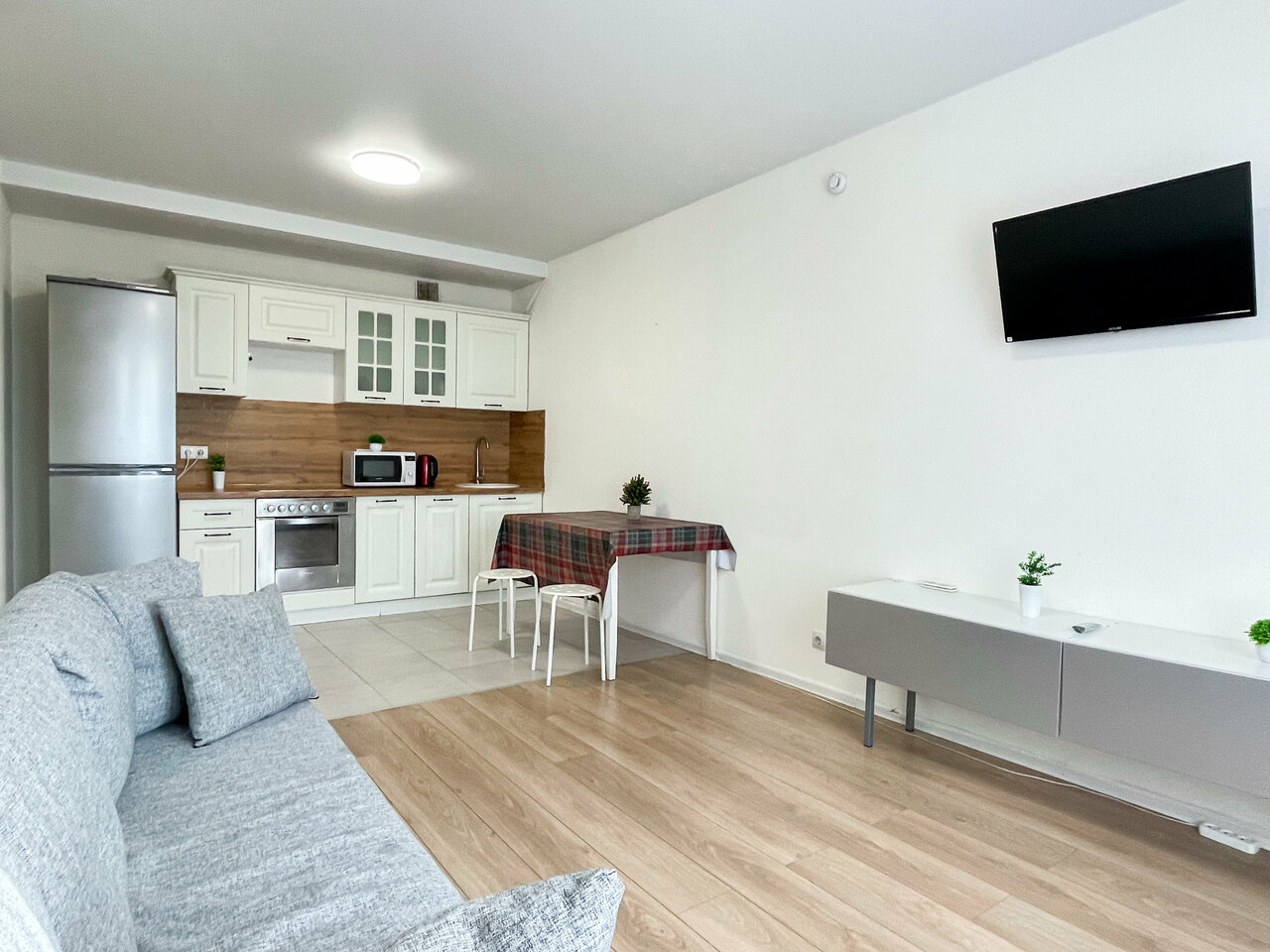 Студия 32 кв.м.Одновременно может разместиться до 2-х гостей.Стоимость указана за 1-2 человек.Заезд с 14:00, выезд до 12:00. Домашние животные за доп.плату. Отчётные документы по запросу. Курение запрещено.