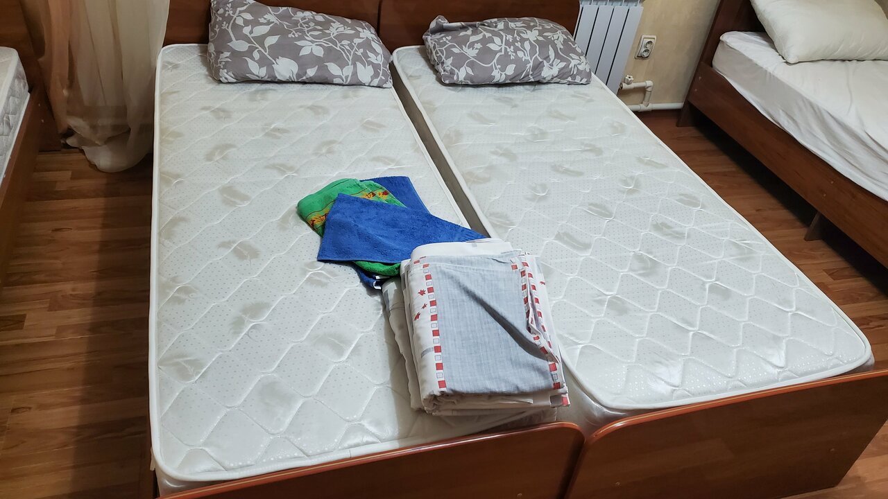 Брали номер 3х местный за 2100,дороговато для такого отеля. В номерах духота, в туалете окна нет, вытяжка не справляется, пахнет конализацией. Спали семьей все на разных кроватях, матрасы с пружинами, которые уже вылезли. Подушки, одеяла, какие то старые, ну хотя-бы всё чистое, по запаху. Чайник только на ресепшене. Из плюсов есть кондиционер, душ, зеркало в ванной, номер большой с прихожей и холодильником, рядом на территории, есть кафе. Администратору спасибо, быстро нас оформила, приветливая.