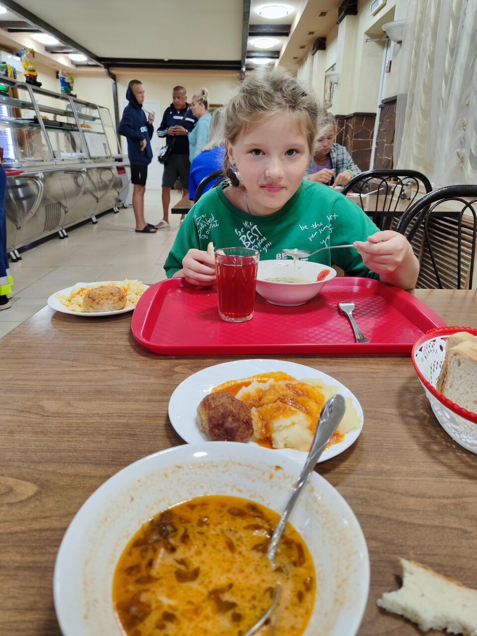 Останавливались в кафе пообедать. Борщ, похожий больше на щи,но вкусный. Также гуляш с пюре понравились. Недорого.