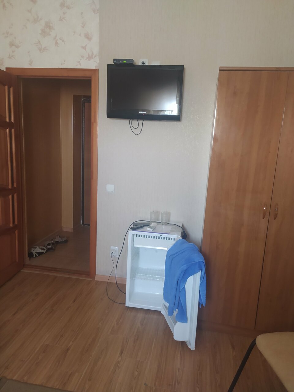 Номер выполнен всем необходимым для комфортного проживания ,а именно : кондиционер, телевизор ,холодильник ,а также сушилка и балкон.На территории нашего отеля работает столовая. Питание не входит в стоимость проживания. Вы можете заказать компле...