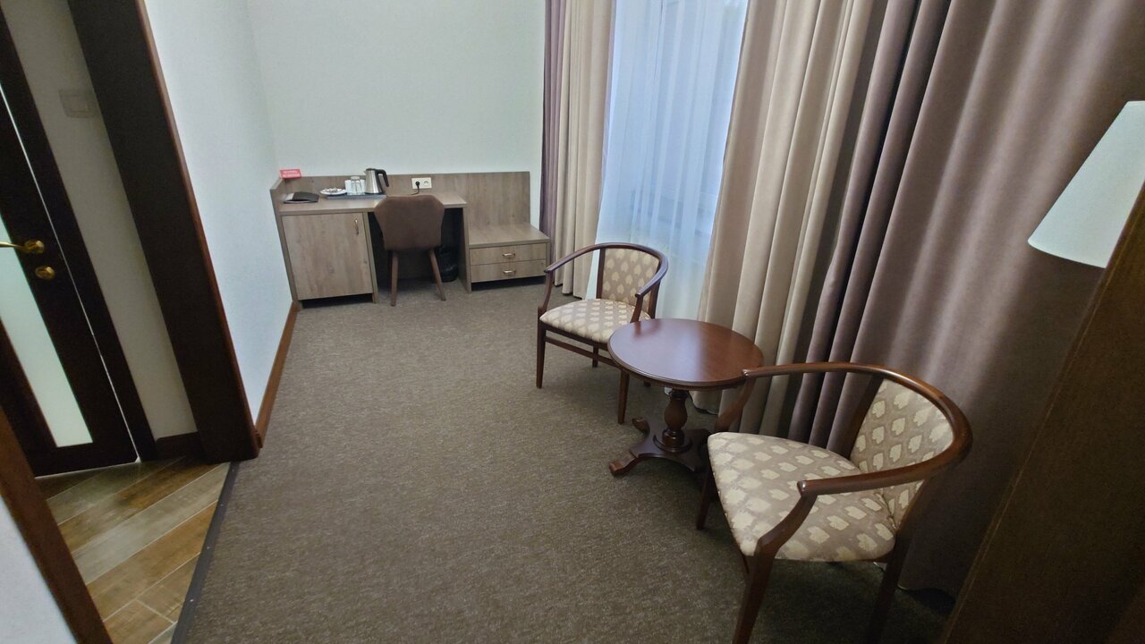 Гостиница понравилась. Каждый день уборка и новые полотенца. Завтрак приносят в номер, что очень удобно. На первом этаже есть ресторан, можно поужинать или заказать еду в номер, ценник средней категории.